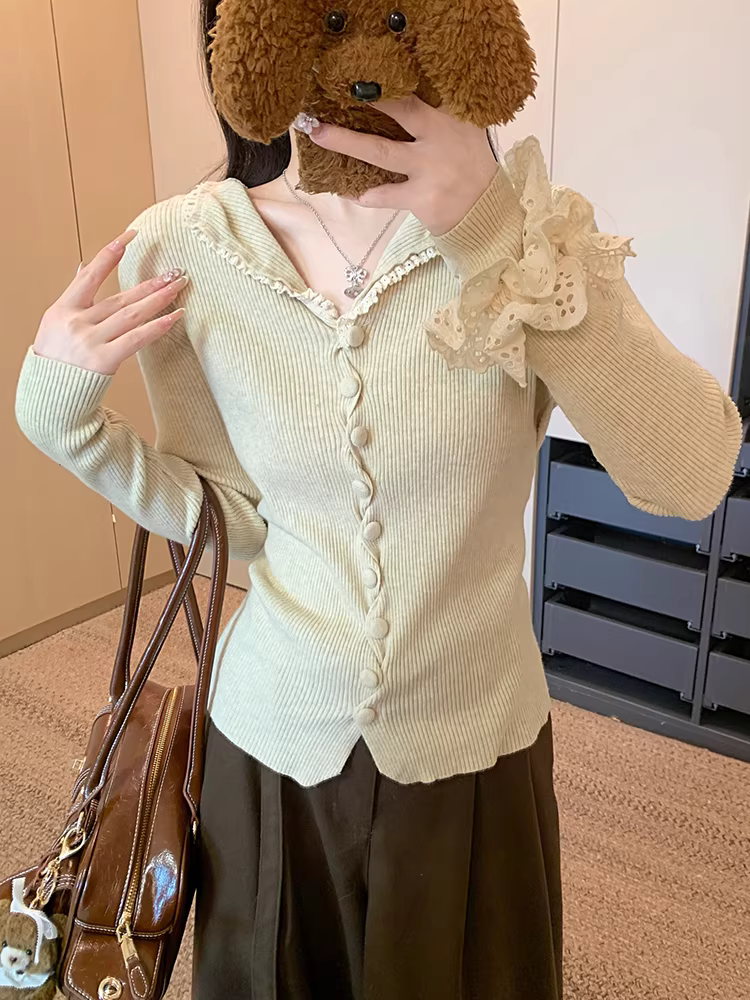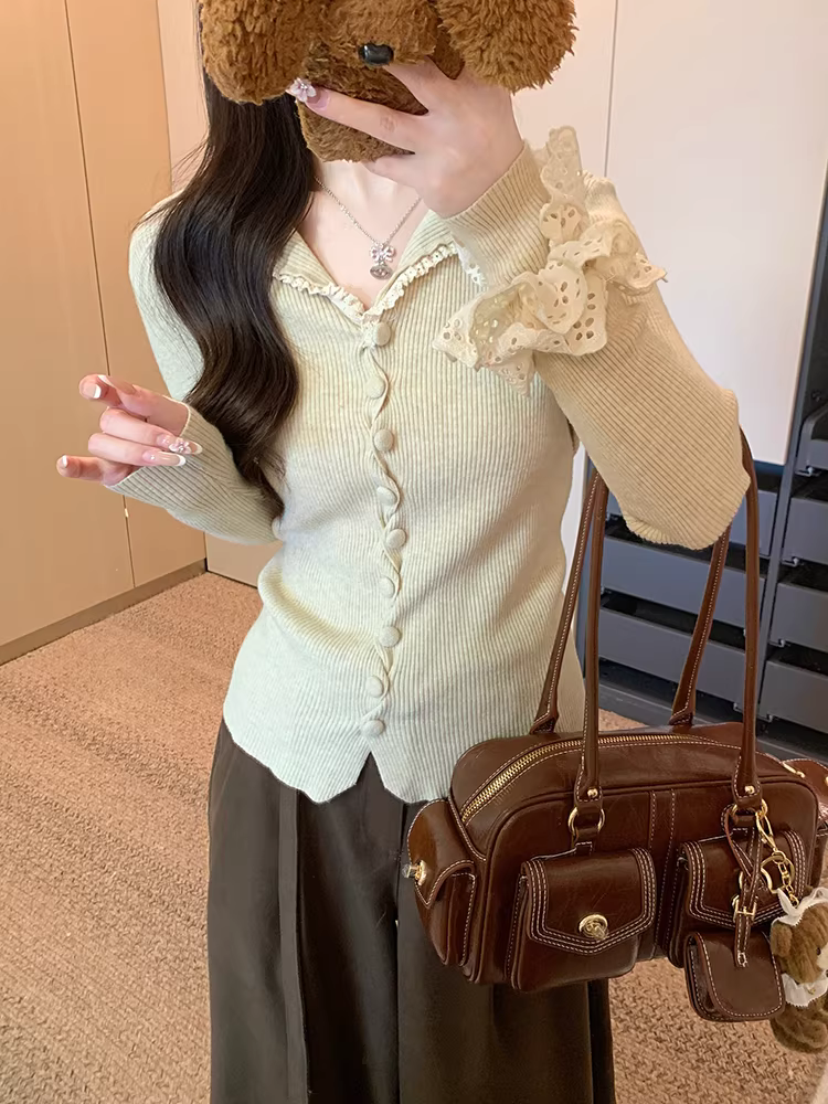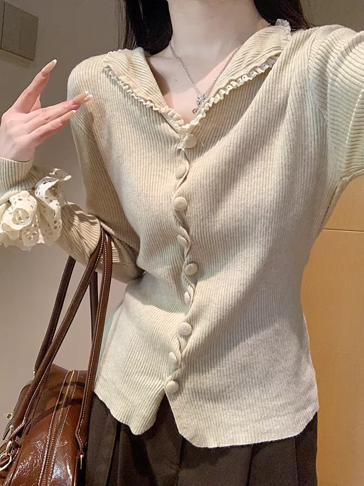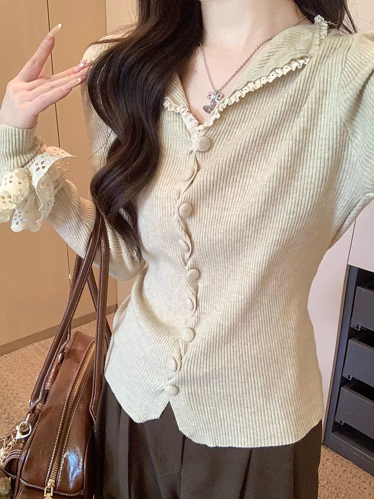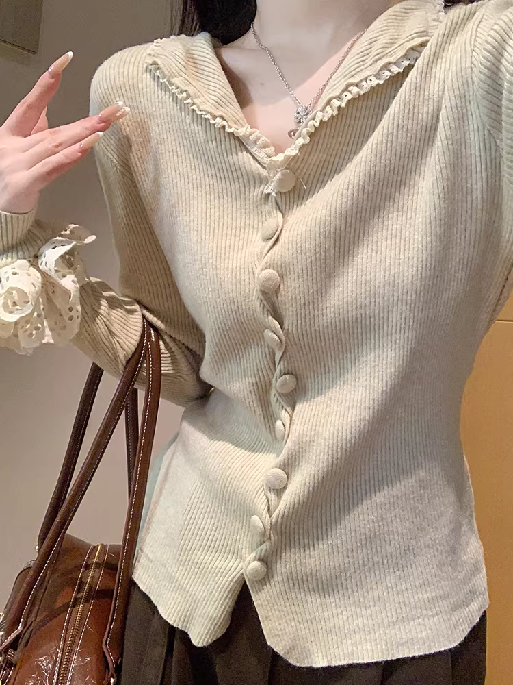 Áo len dệt kim màu xám La Chapelle dành cho nữ, mẫu mới thu đông 2025, kiểu dáng thắt eo, tôn dáng.