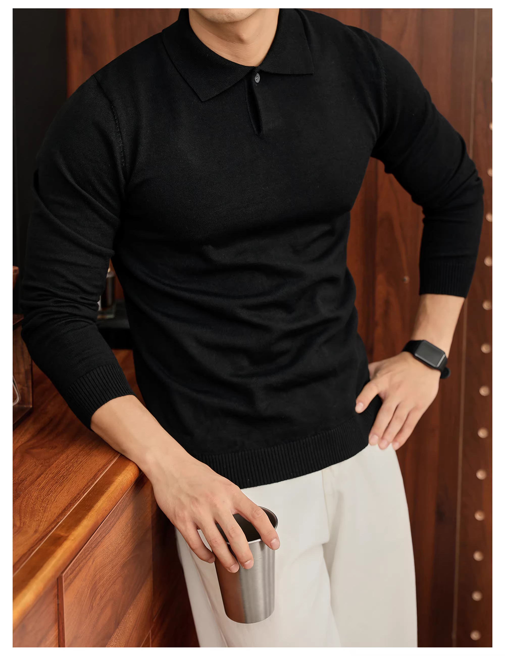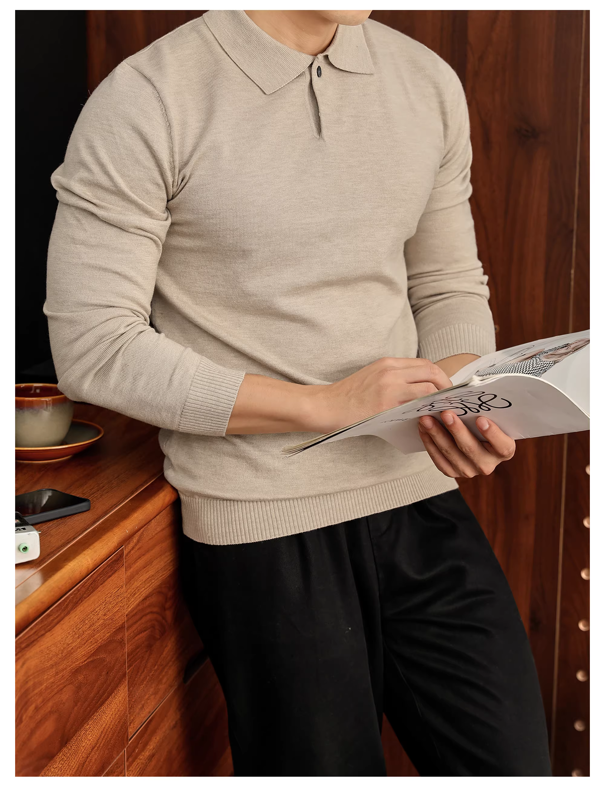 - Áo len dệt kim một nút LUUD mùa thu đông áo sơ mi POLO nam phong cách retro quần áo công sở áo len dài tay dáng ôm