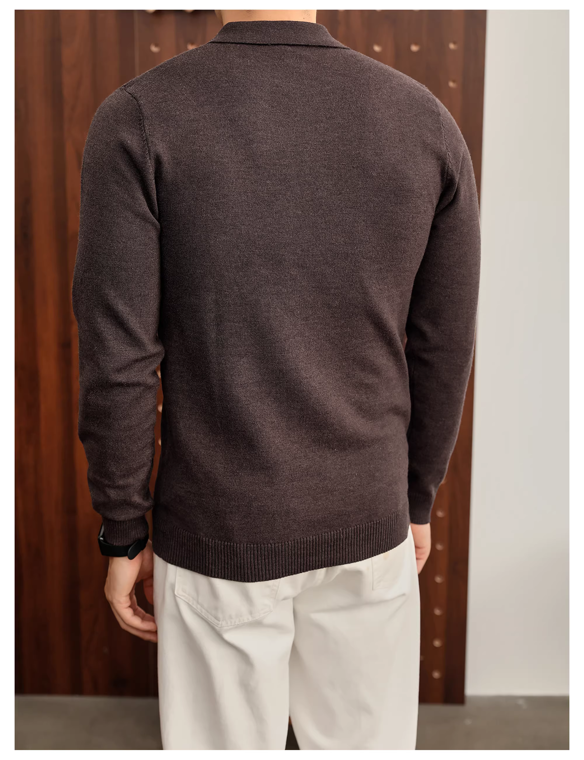 Áo len dệt kim một nút LUUD mùa thu đông áo sơ mi POLO nam phong cách retro quần áo công sở áo len dài tay dáng ôm