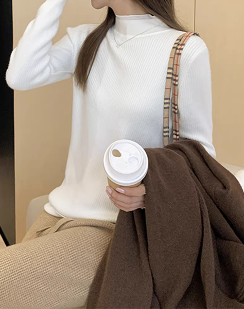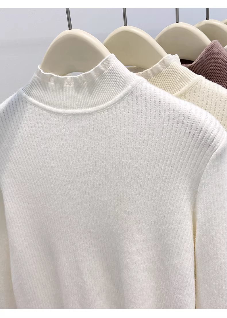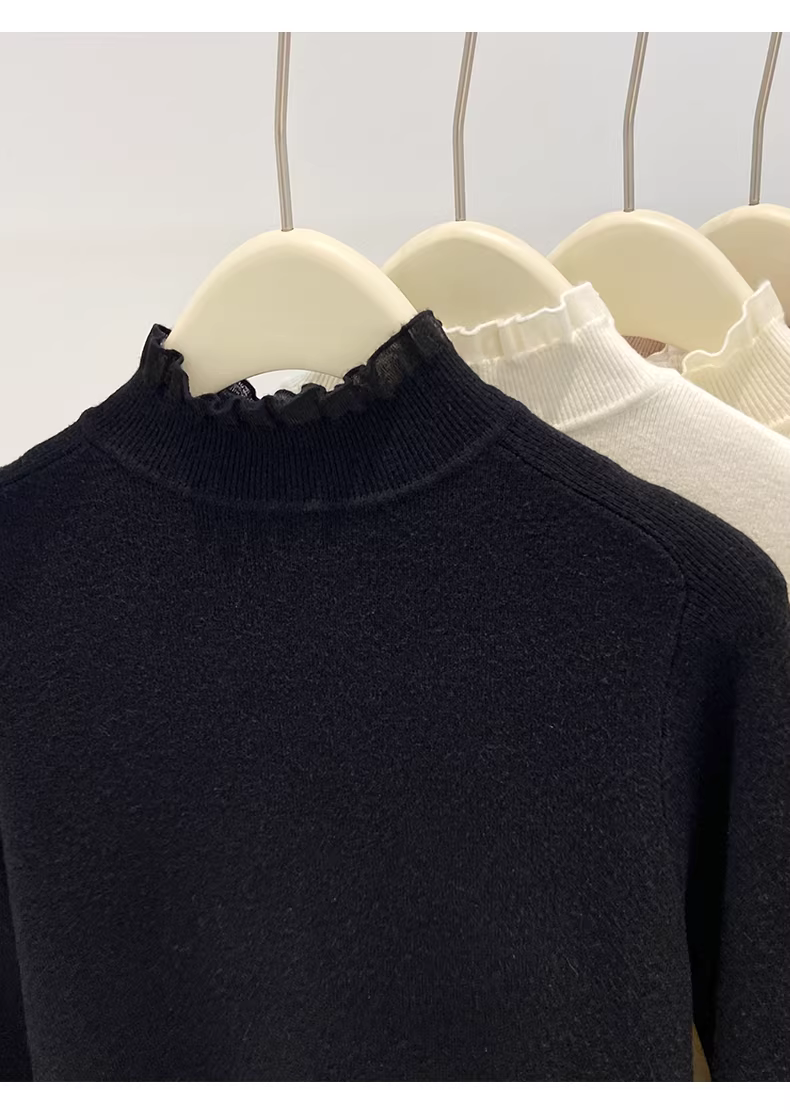 - Áo len dệt kim phối ren cổ nửa cao màu đen La Chapelle dành cho nữ 2025 mới mùa thu đông dáng ôm