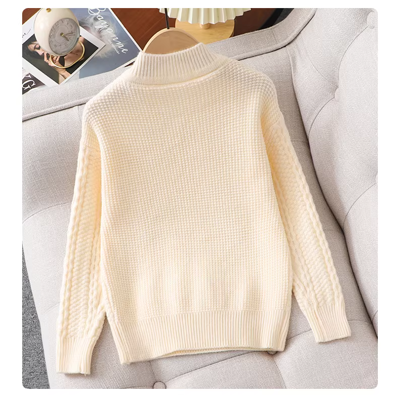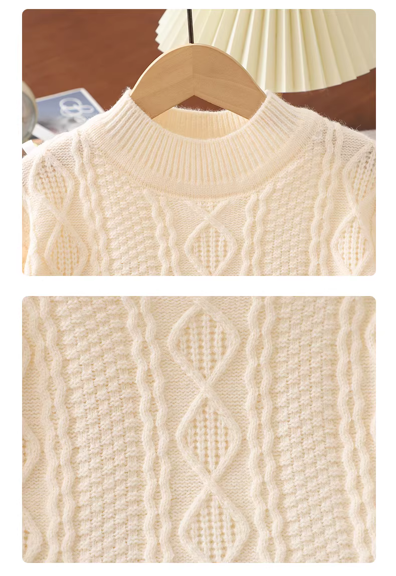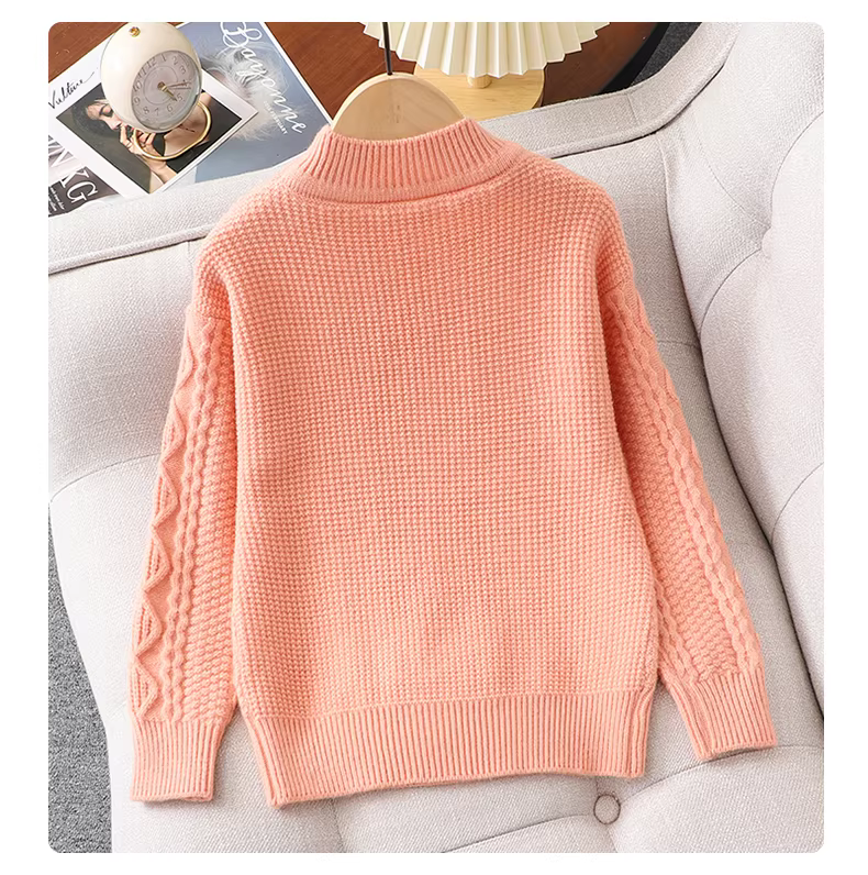 Áo len đỏ có lớp lót lông cừu dày dặn cho bé gái, mùa đông 2025, áo len đan kiểu mới thời trang cho bé gái lớn hơn.