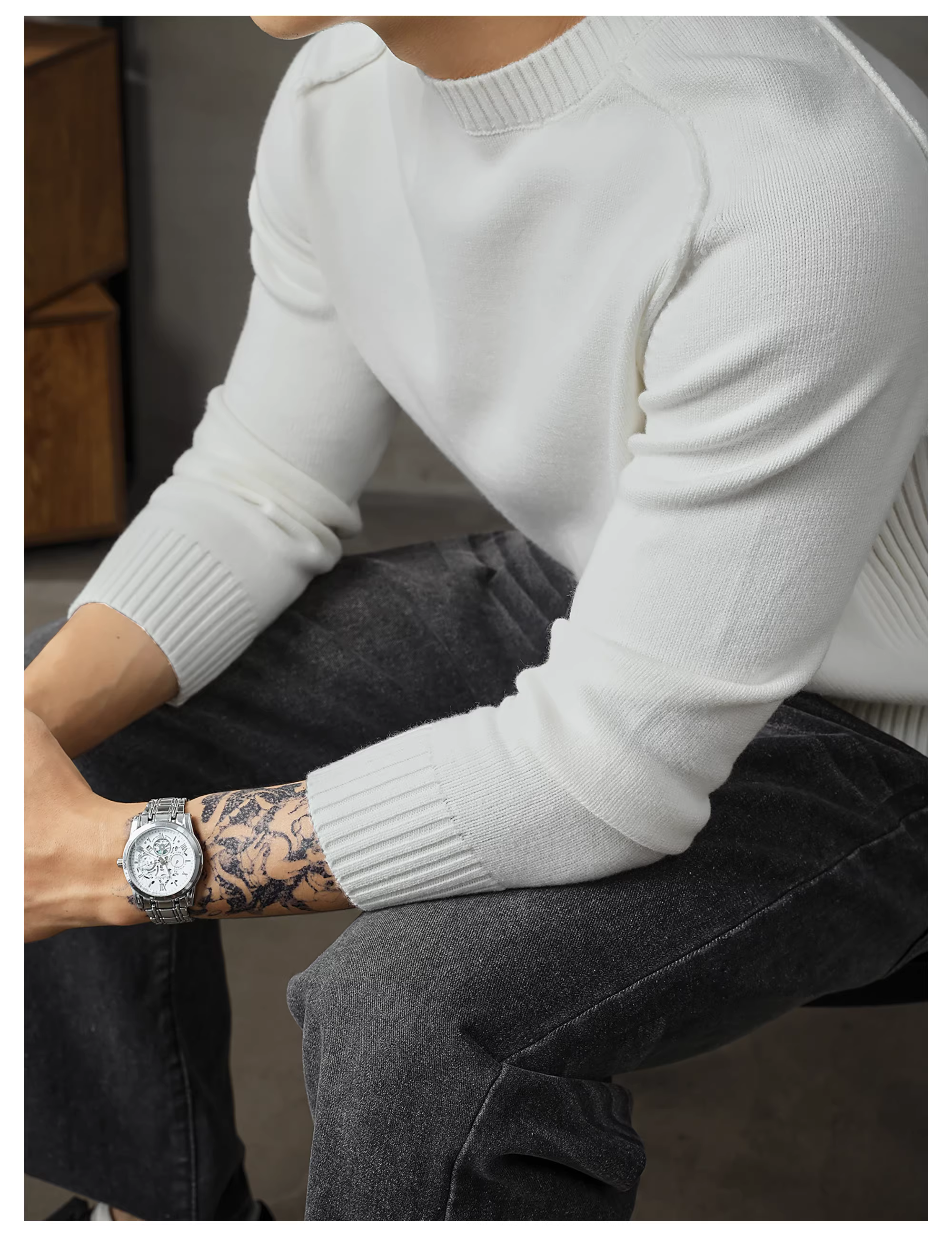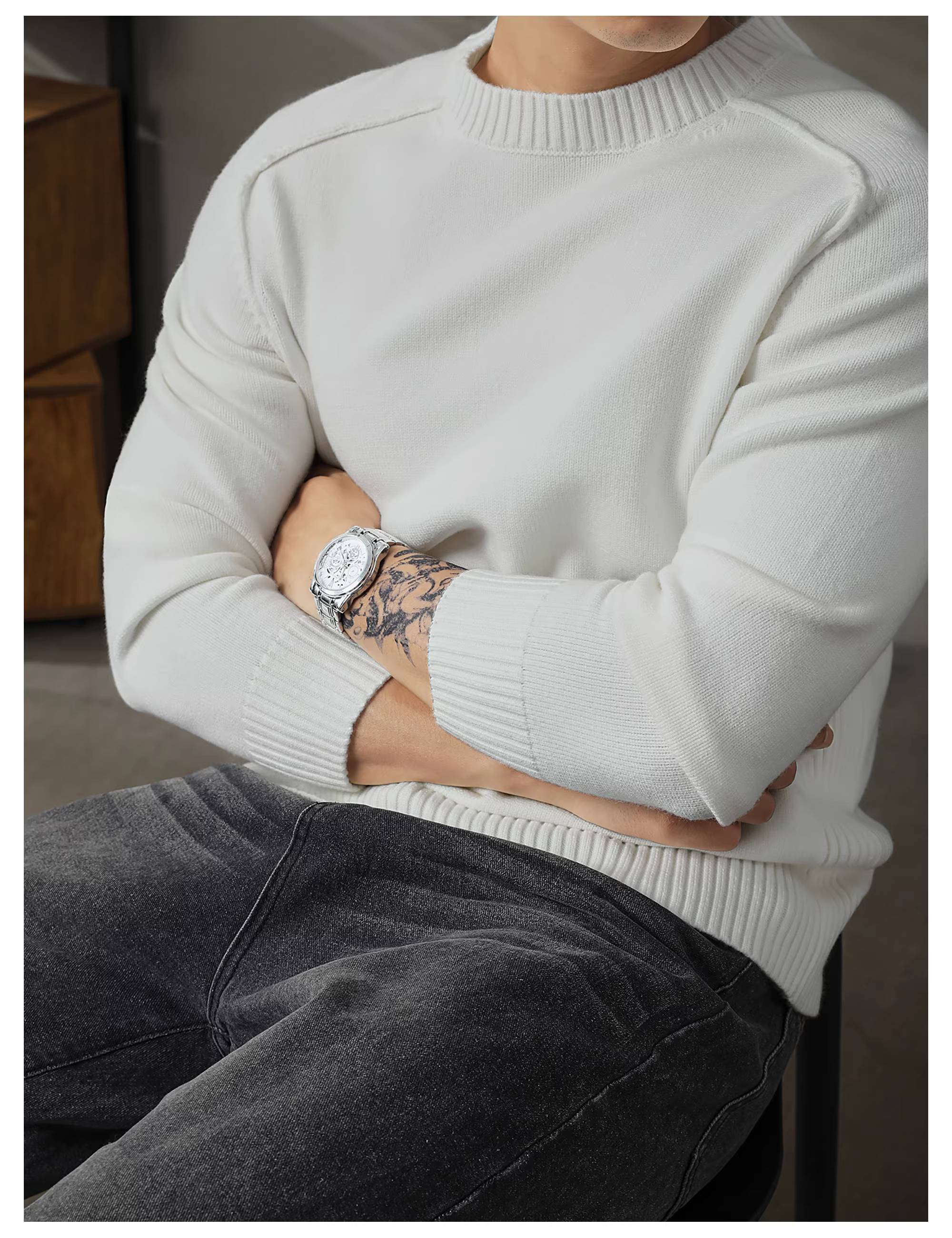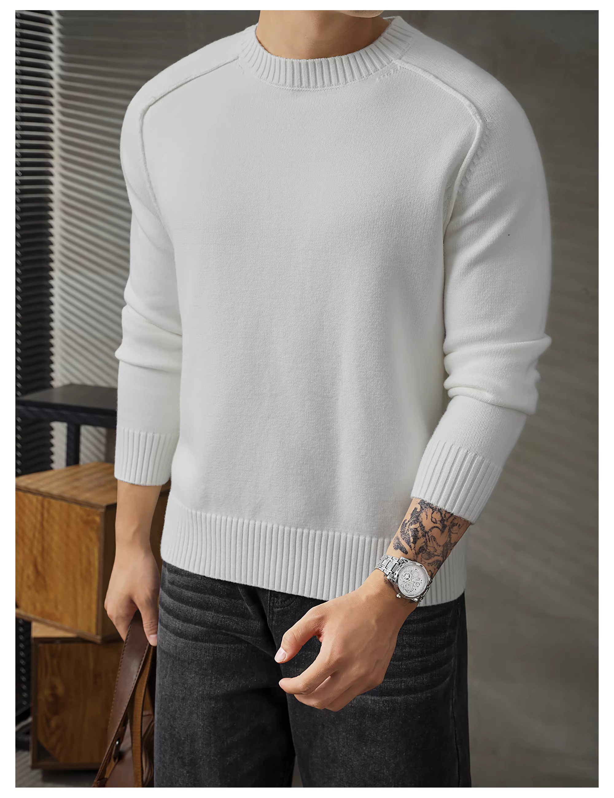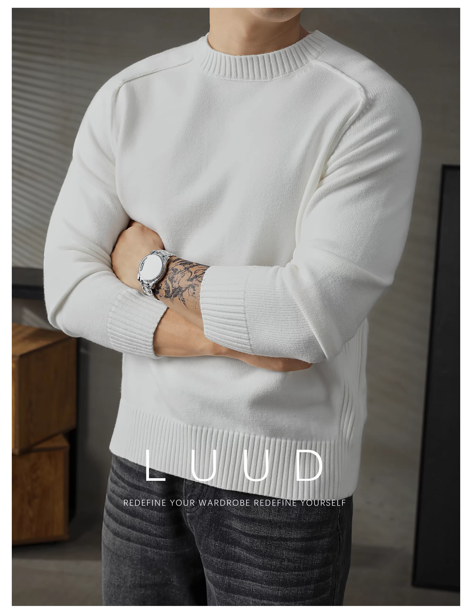 - Áo len đơn giản phong cách Hàn Quốc LUUD dành cho nam, áo len dệt kim cổ tròn kiểu dáng lười biếng hợp thời trang mùa thu đông