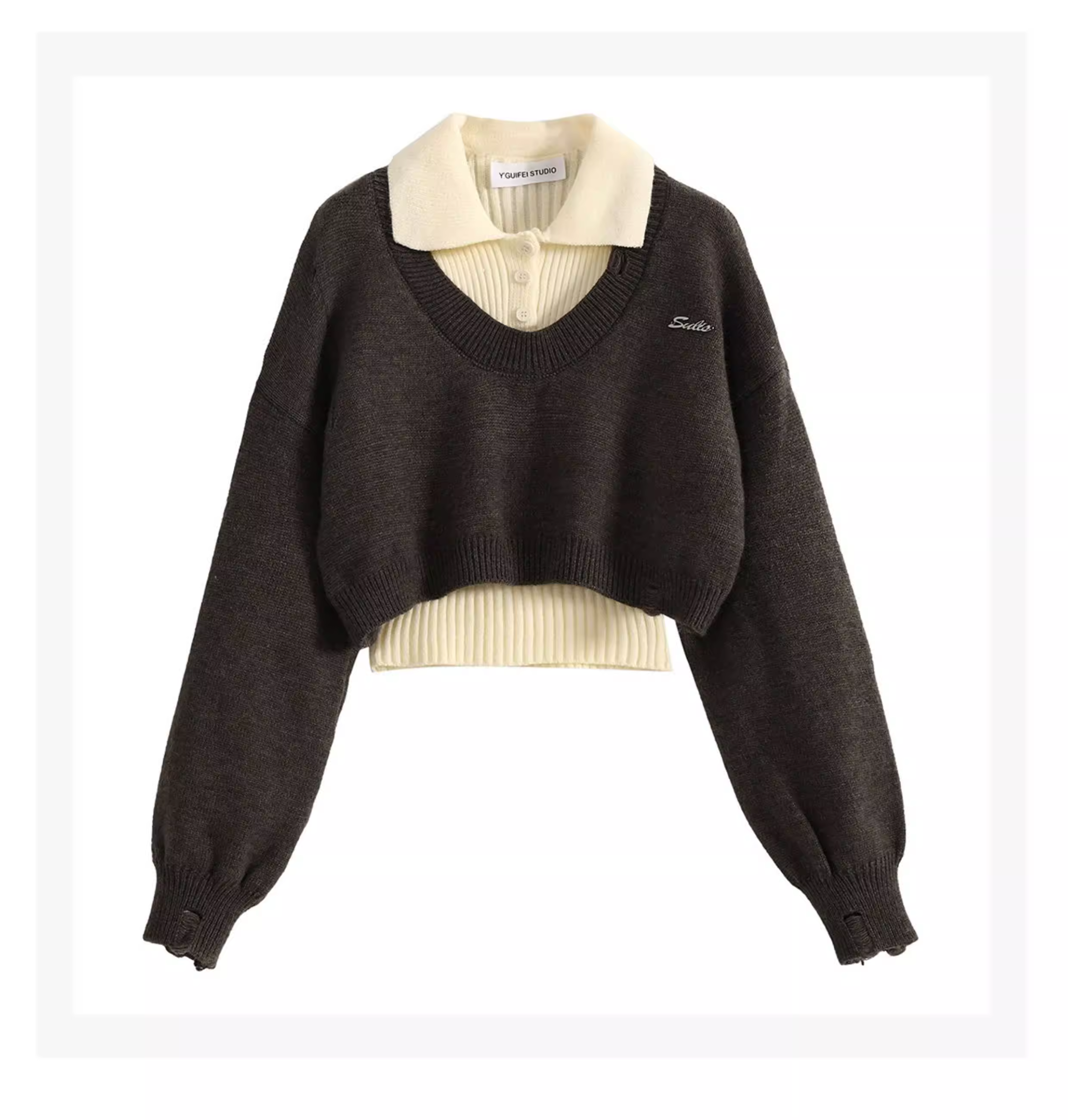 - Áo len hai mảnh La Chapelle dành cho nữ, kiểu dáng mới thu đông 2025, phong cách học sinh, ôm dáng, cổ polo, áo ngắn