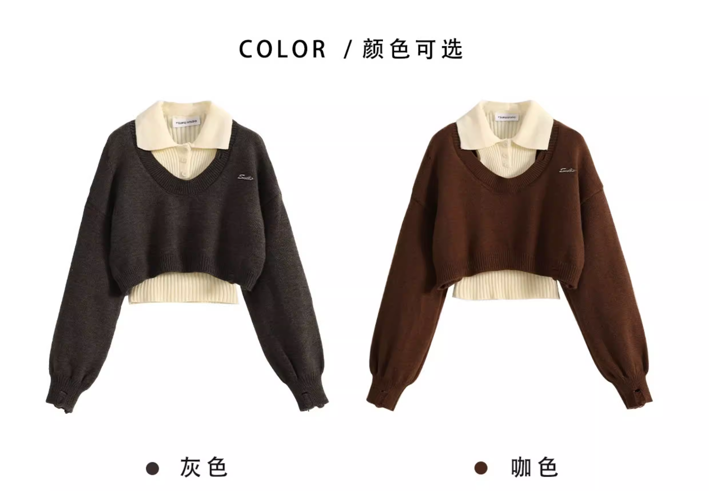 Áo len hai mảnh La Chapelle dành cho nữ, kiểu dáng mới thu đông 2025, phong cách học sinh, ôm dáng, cổ polo, áo ngắn
