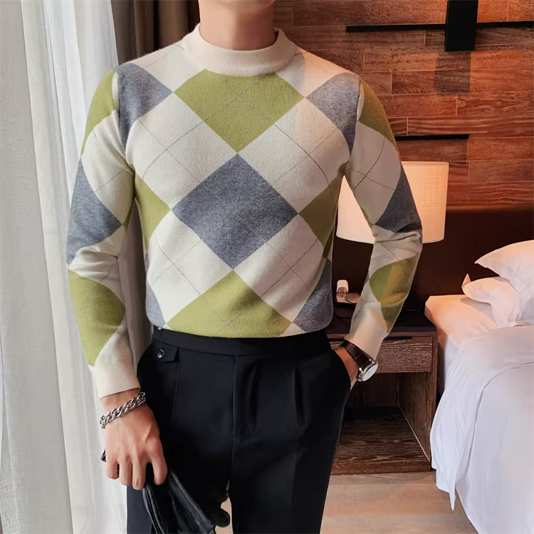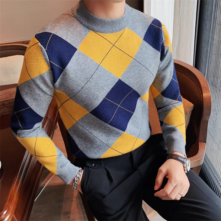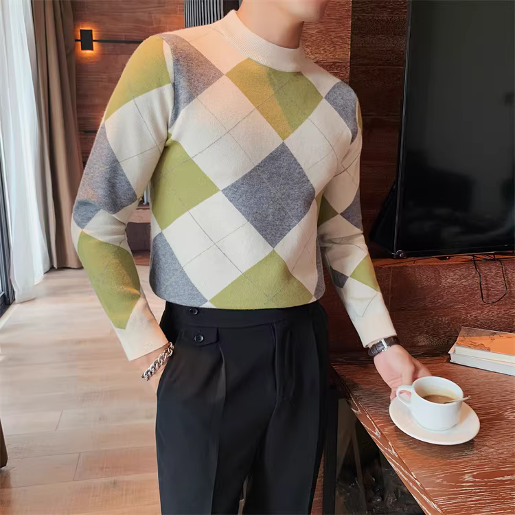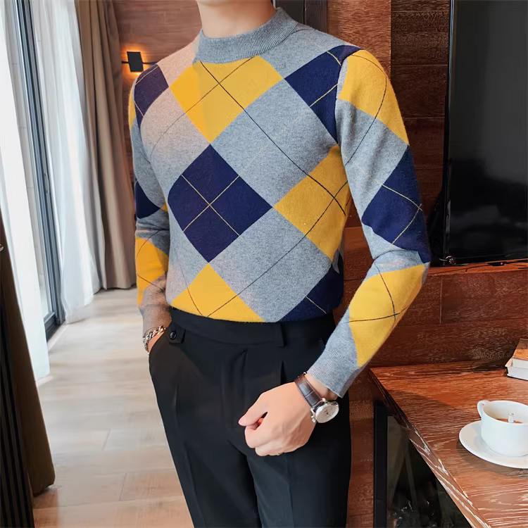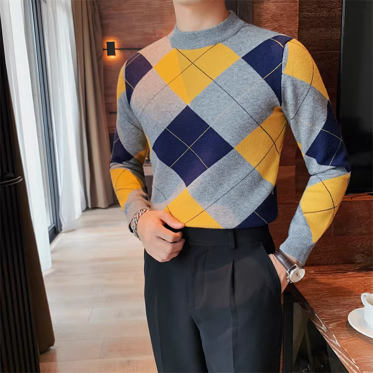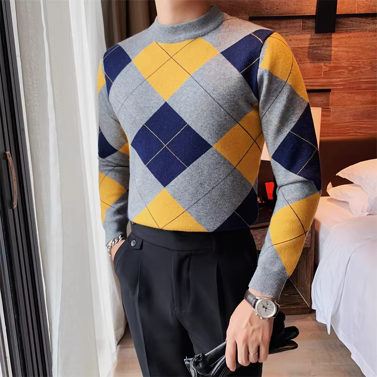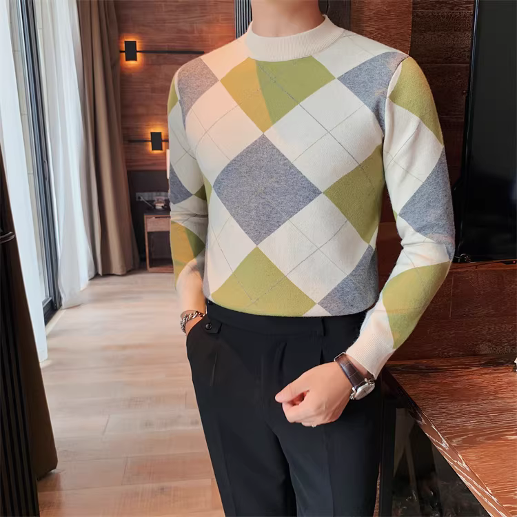 - Áo len kẻ sọc tương phản cao cấp dành cho nam, dài tay, dày dặn cho mùa thu đông, mềm mại và thân thiện với làn da, áo sơ mi dệt kim cổ tròn đa năng.