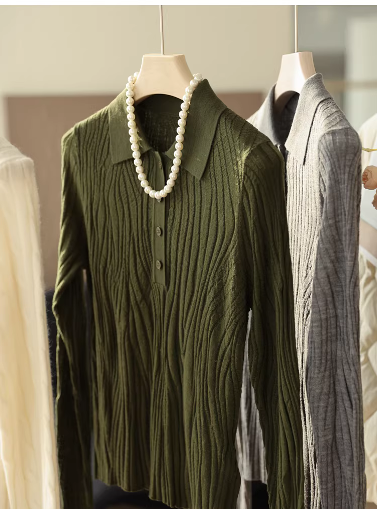 - Áo len len nguyên chất siêu mịn 48 sợi của Đức, chất liệu len nguyên chất, họa tiết gợn sóng, có tác dụng làm thon gọn, dệt liền mạch với cổ áo lật dành cho nữ, mẫu mới cho mùa thu.