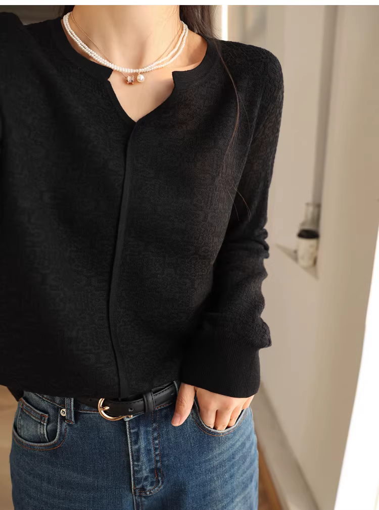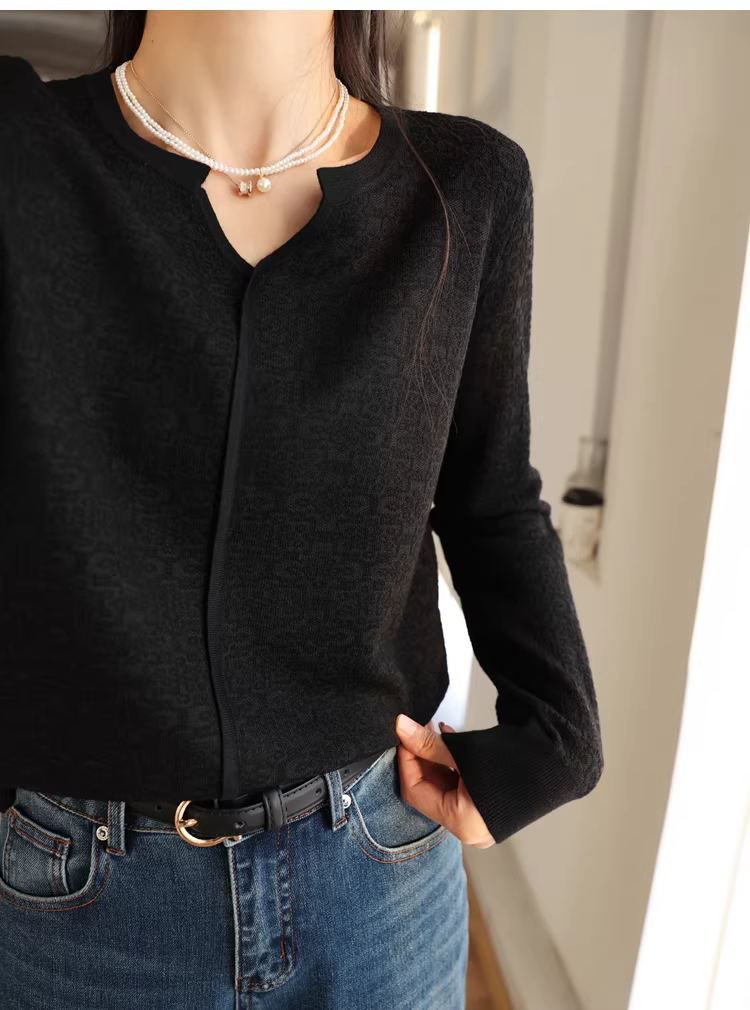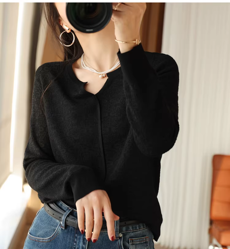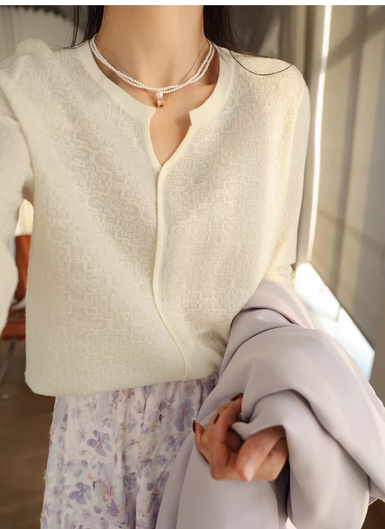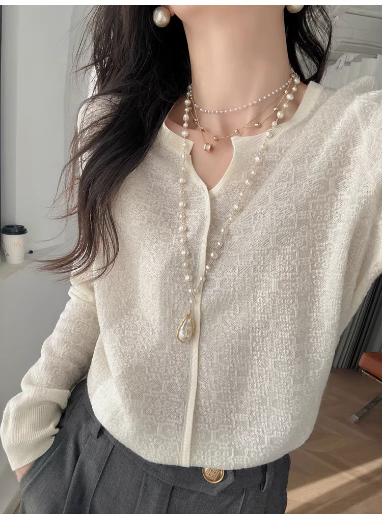 - Áo len len phong cách Trung Quốc mới ren jacquard cổ chữ V dệt kim dài tay áo thun mỏng dành cho nữ đầu xuân
