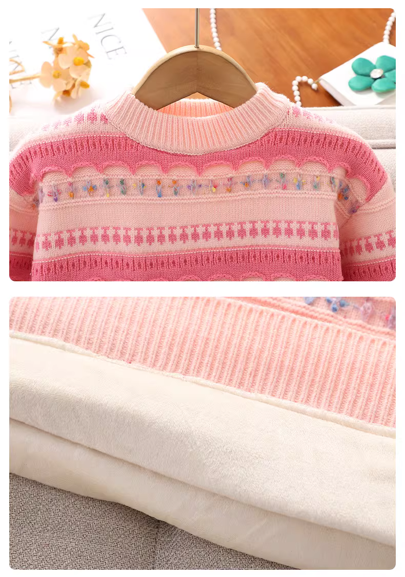- Áo len lông cừu bé gái thu đông kiểu mới 2025, áo len dệt kim dày dặn kẻ sọc giữ ấm cho bé gái