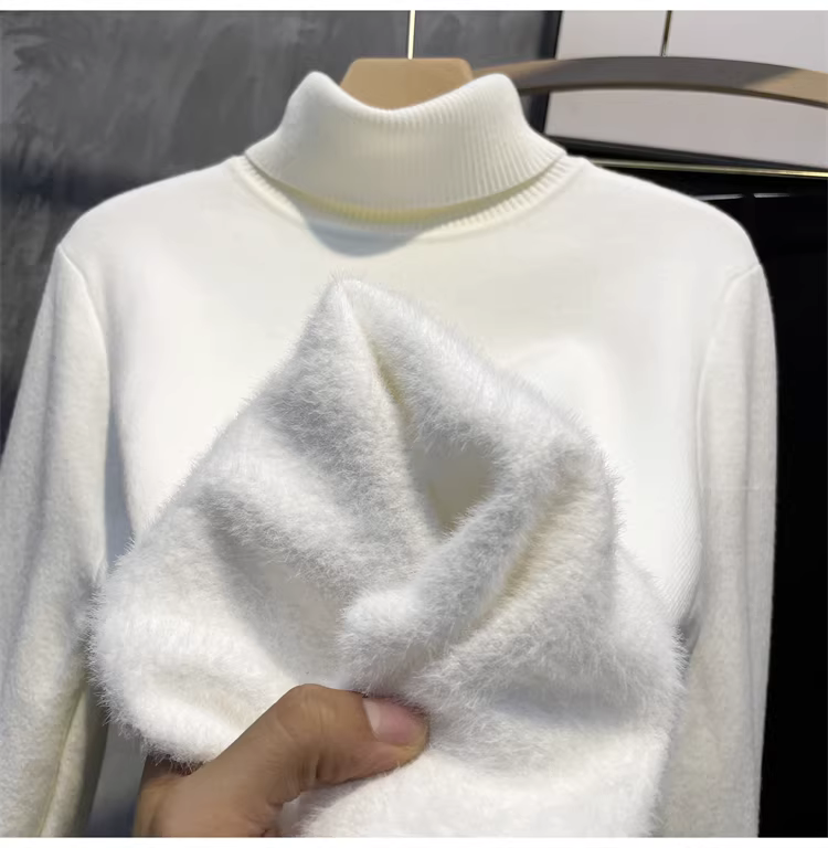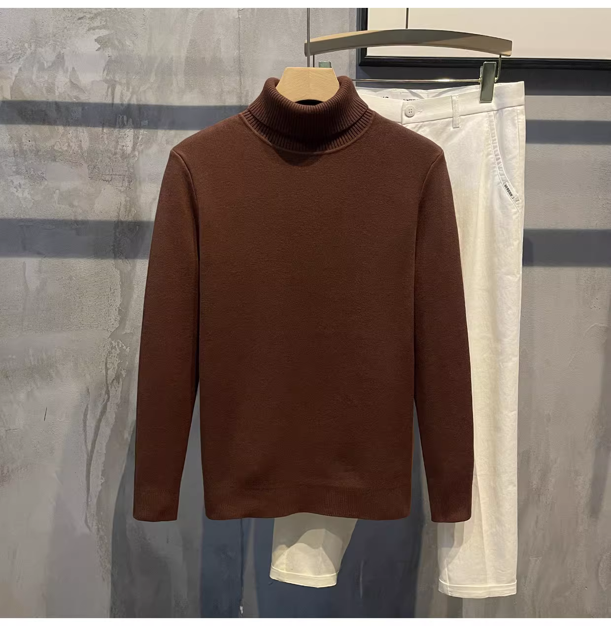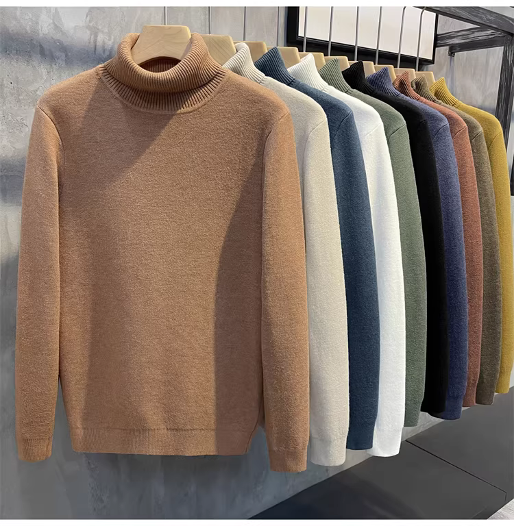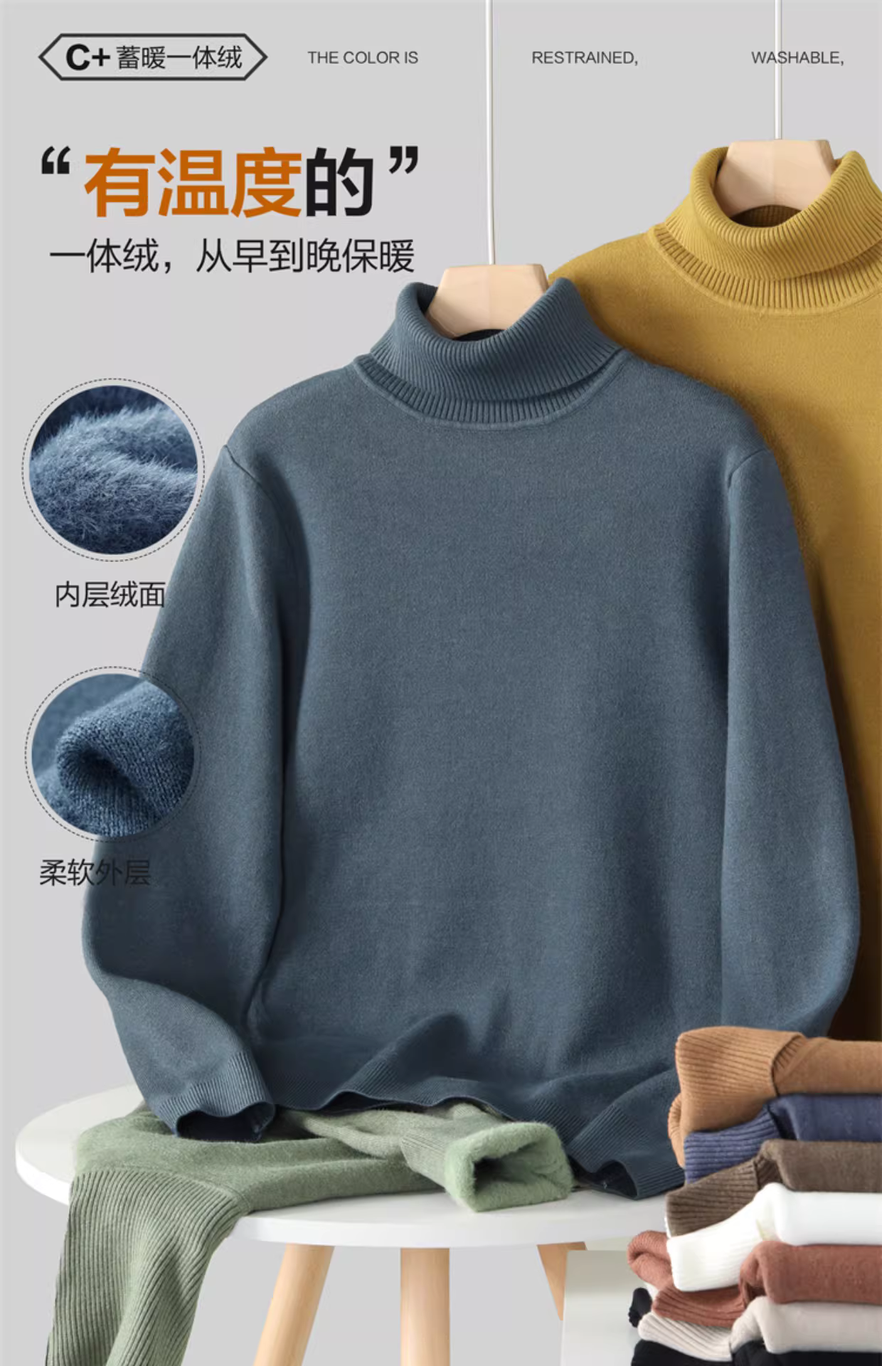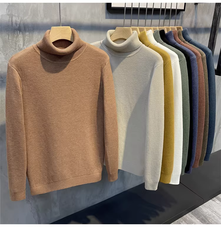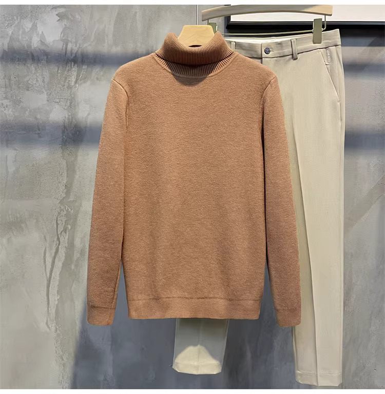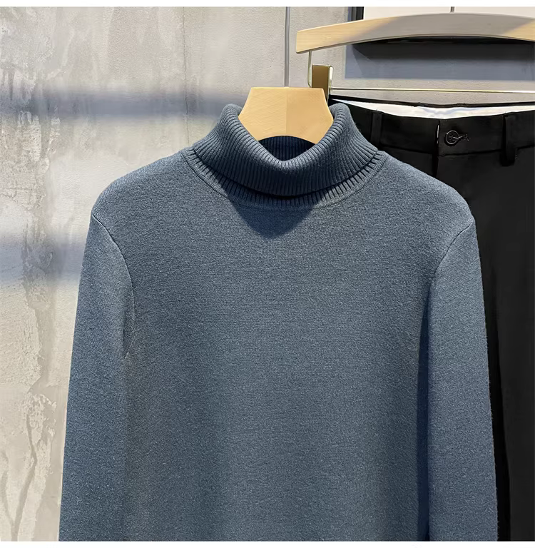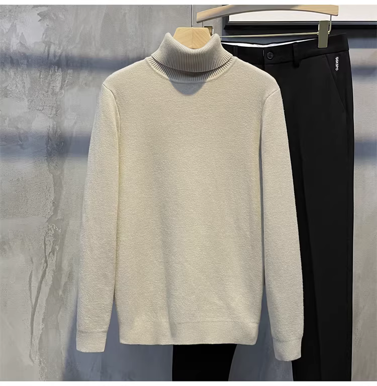 - Áo len lông cừu dày một mảnh mùa đông LUUD dành cho nam, áo len dài tay cổ lật cổ cao đa năng màu trơn thân thiện với da