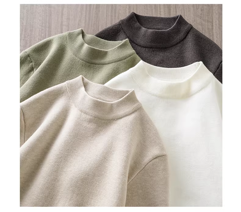 - Áo len lông cừu nửa cổ cao dành cho nam, mùa thu đông, lớp lót dày, đồ dệt kim ấm áp, áo len dành cho thanh thiếu niên.