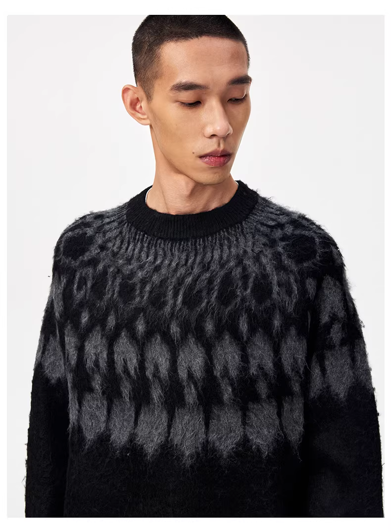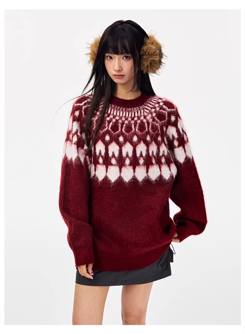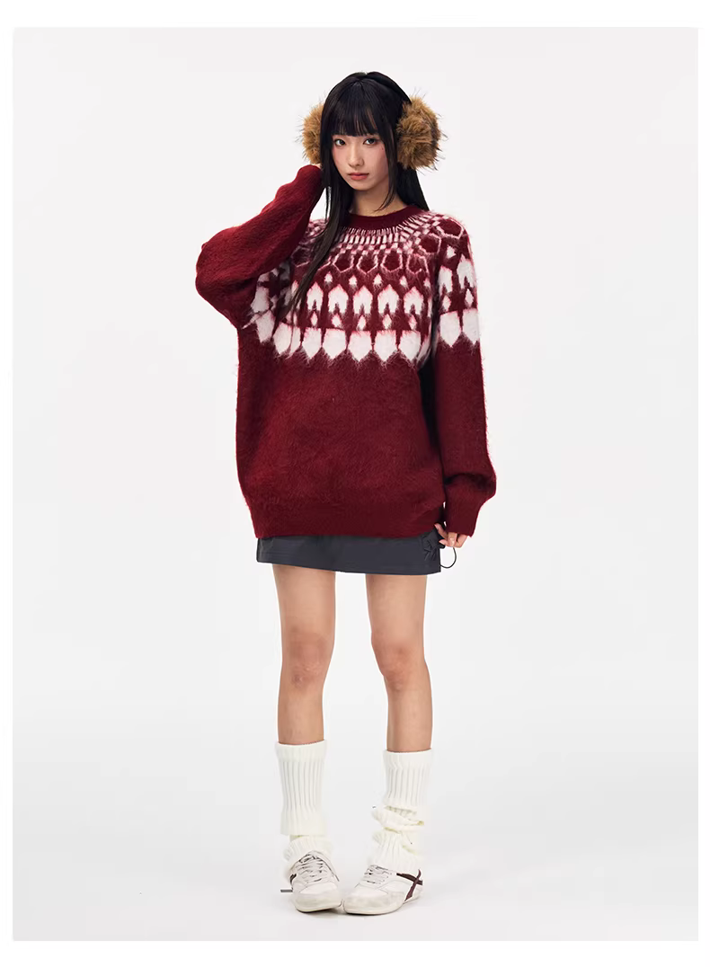 - Áo len màu đỏ Jungle Tiger Nordic Fair Isle Unisex Áo len cặp đôi hợp thời trang Thu Đông Áo len đan len lười biếng