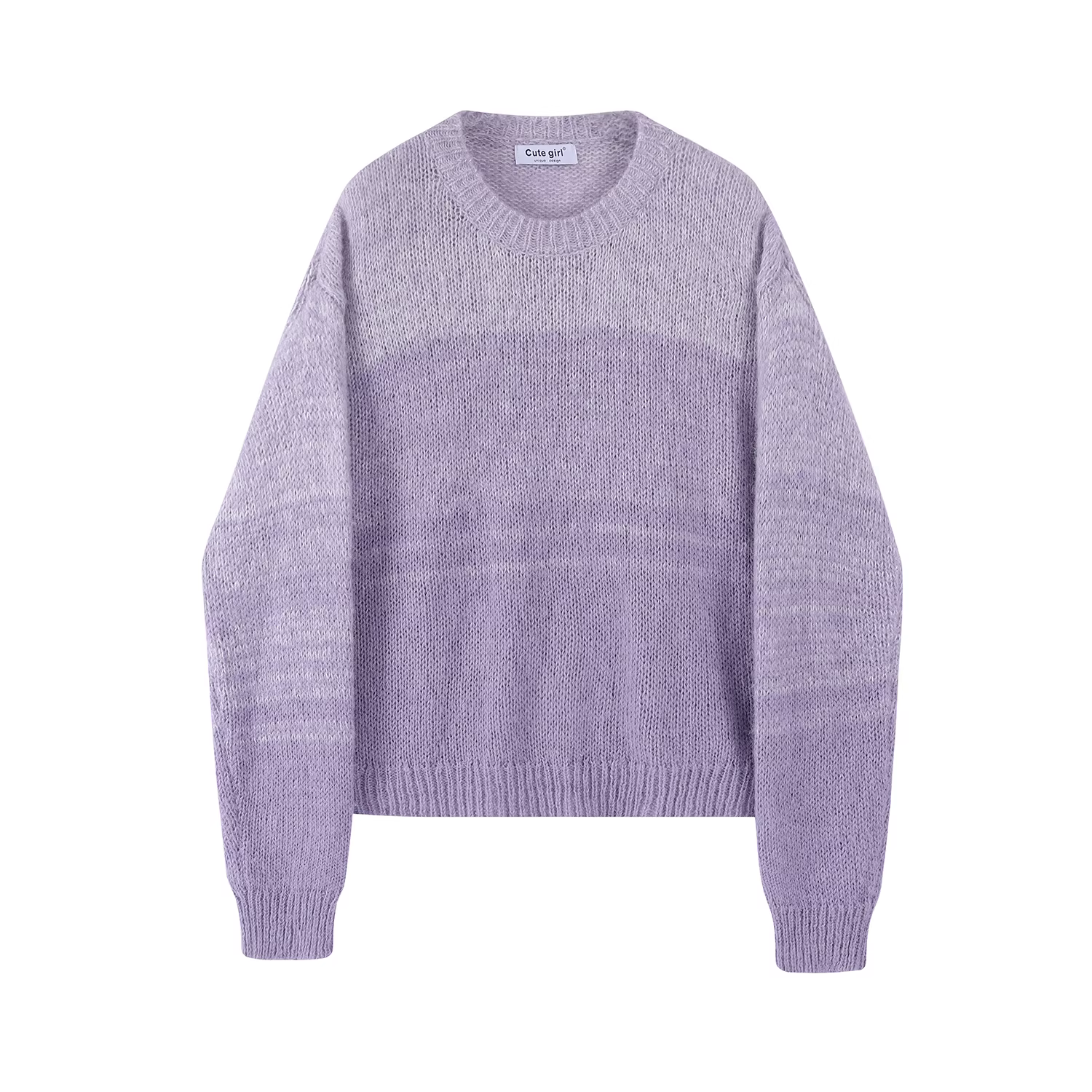 - Áo len màu tím gradient nhỏ nhắn dễ thương dành cho nữ, phong cách mới xuân thu 2025, kiểu dáng lười biếng, áo len dệt kim bên trong dày dặn.