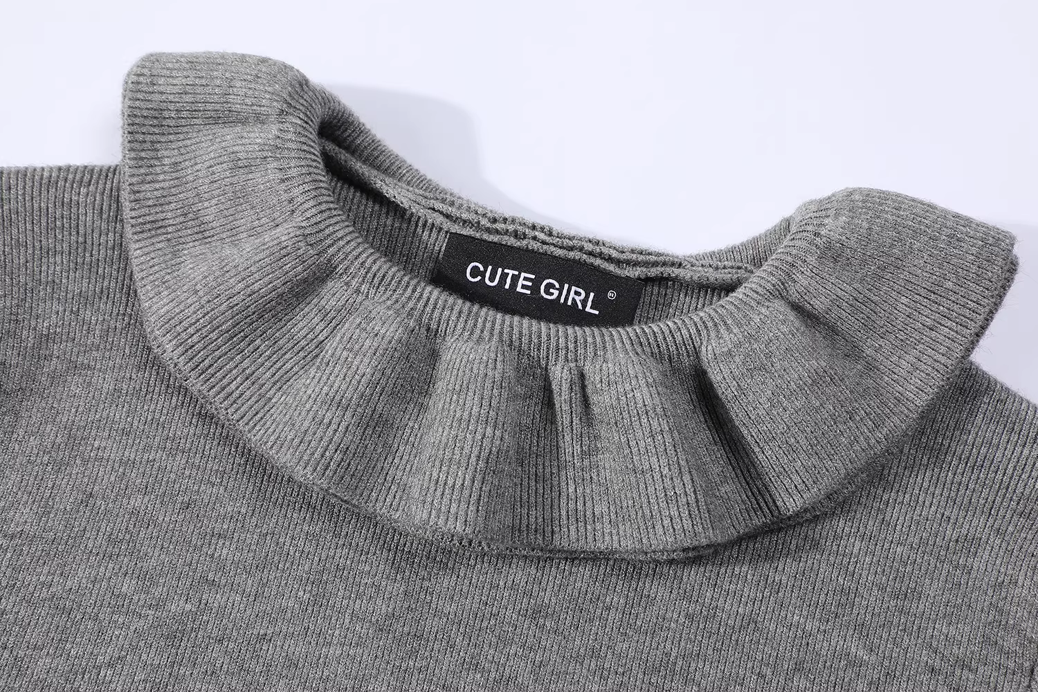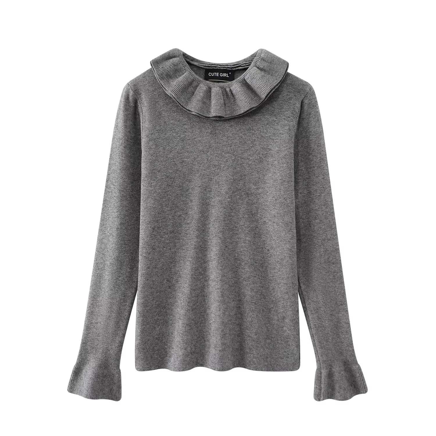 Áo len màu xám cổ ren cổ điển phong cách Hàn Quốc dành cho nữ, thiết kế thu đông, dáng ôm, áo cơ bản đa năng.
