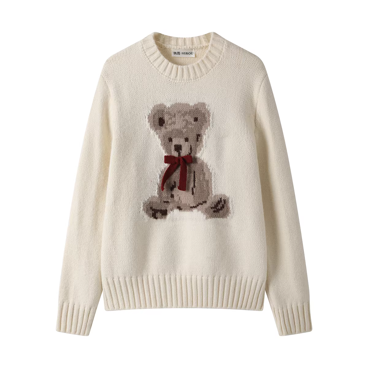 Áo len mềm cổ tròn kiểu dáng lười biếng NSROU dành cho nữ, áo len dệt kim dài tay đơn giản mới mùa thu đông