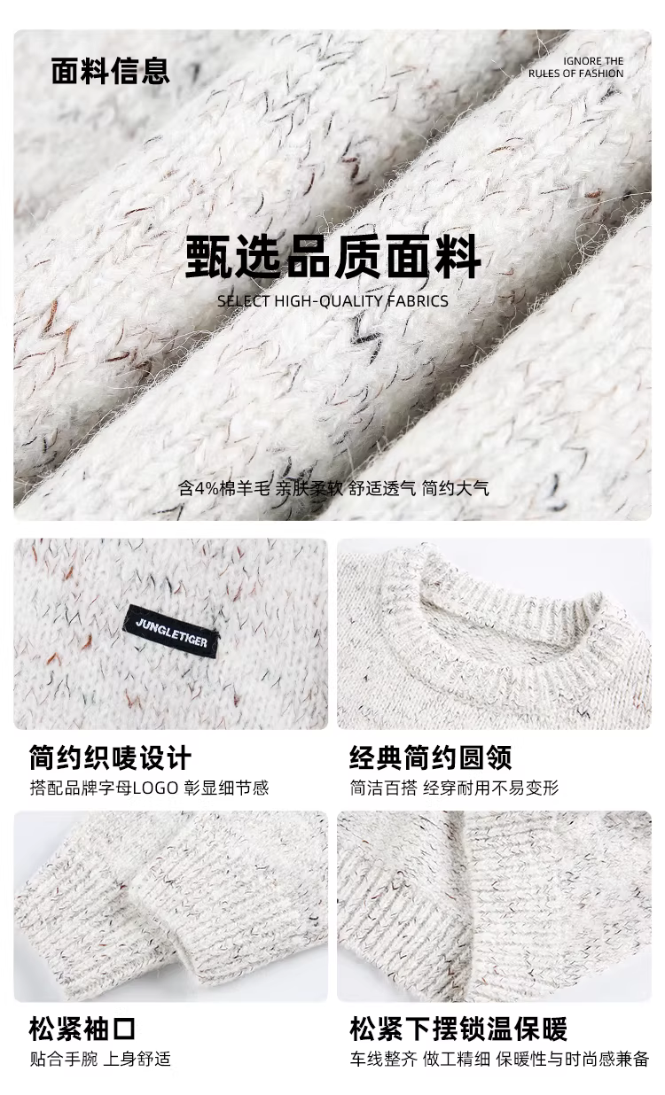 - Áo len mềm mại cổ tròn phong cách Mỹ Jungle Tiger dành cho nam, kiểu dáng cặp đôi mùa thu đông, áo len rộng rãi thoải mái
