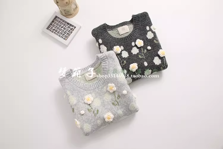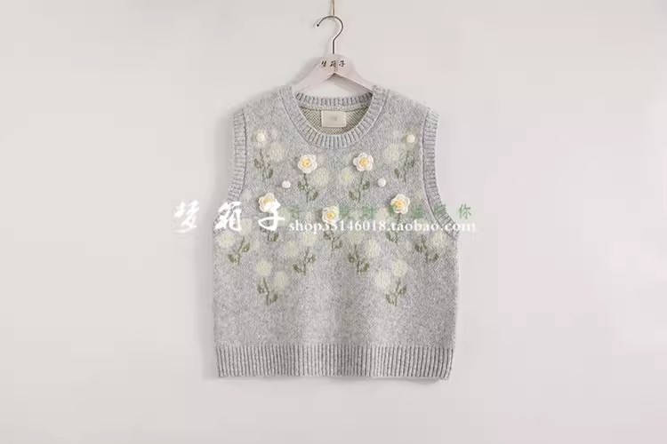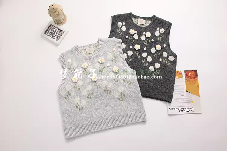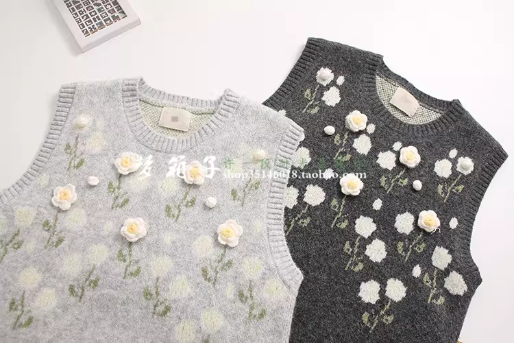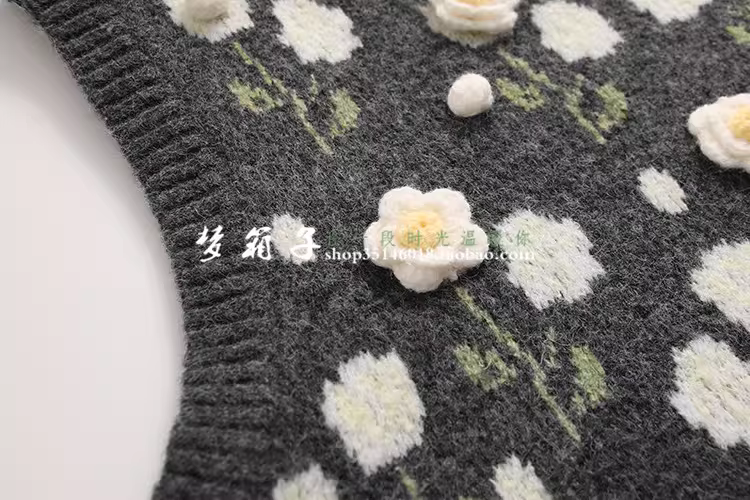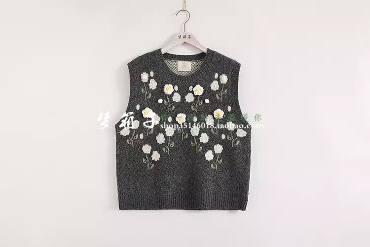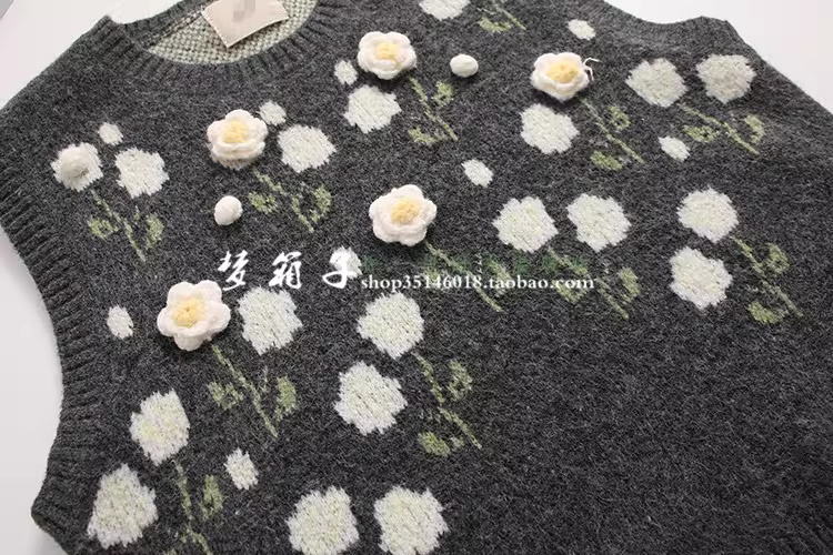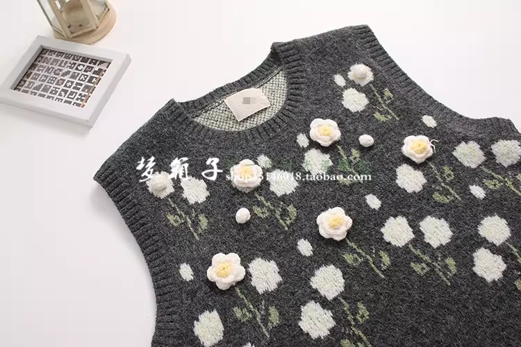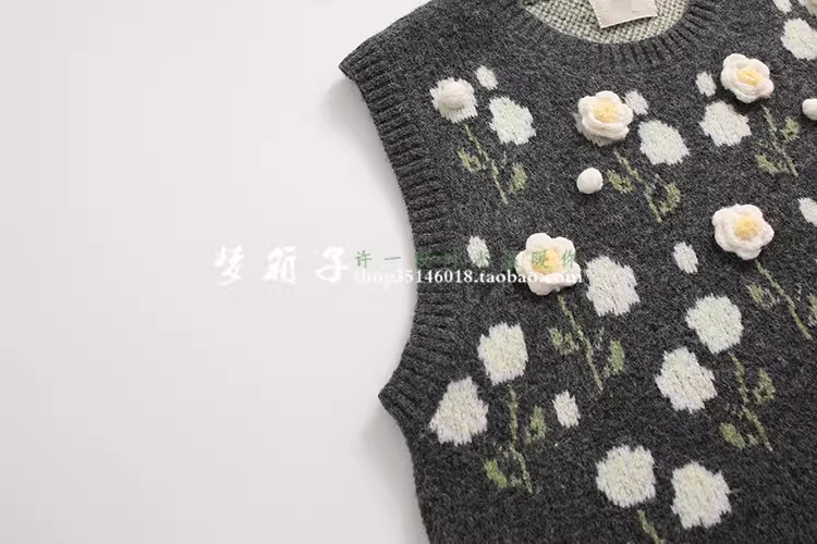 - Áo len móc hoa ba chiều cổ tròn dáng rộng mùa thu Dream Box 2025, kiểu dáng dễ thương, chất liệu len dệt kim không tay