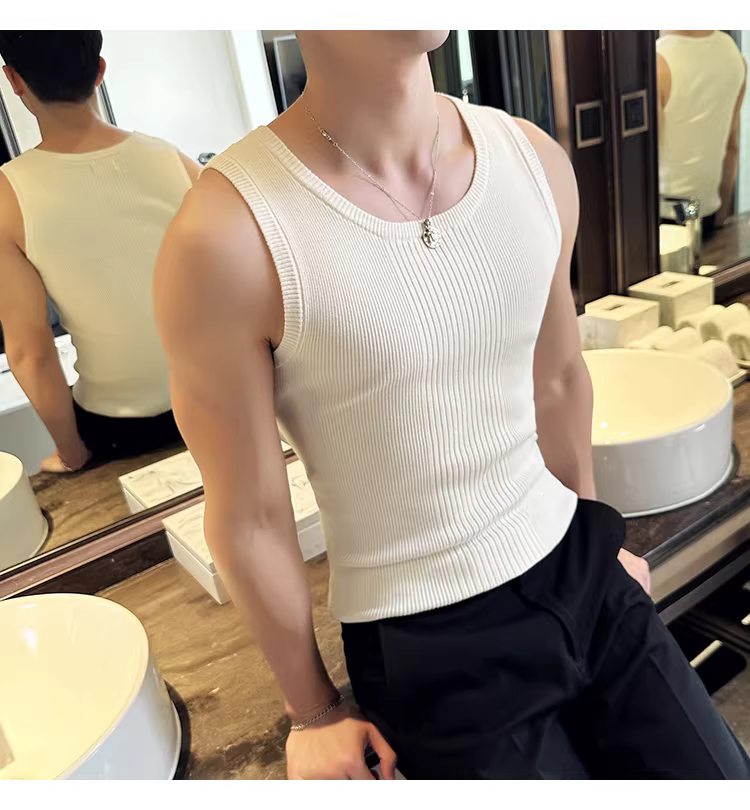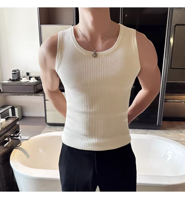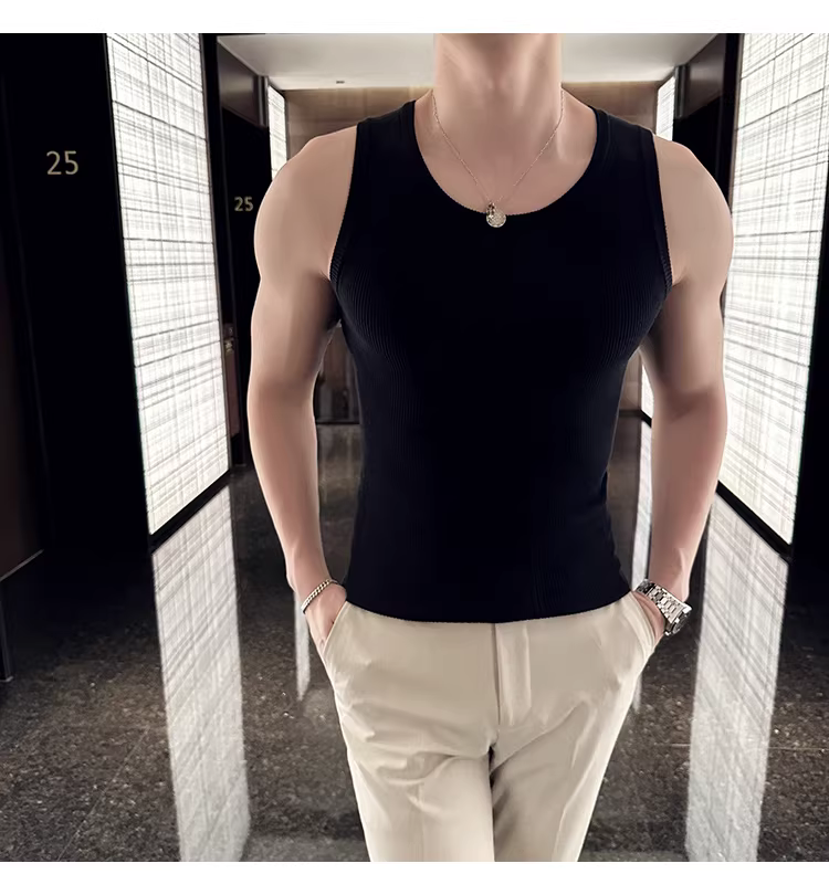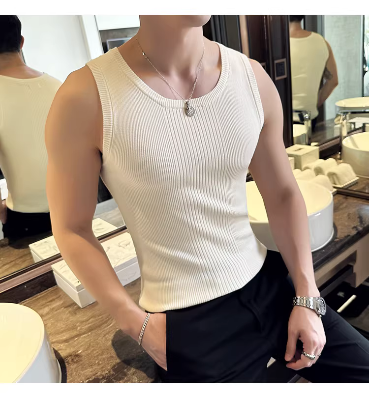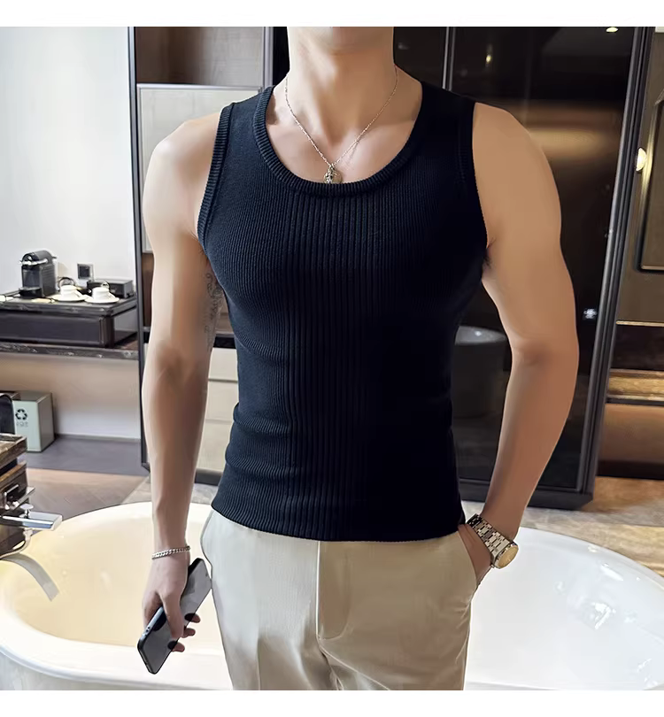 Áo len nam cao cấp, kiểu dáng ôm sát, chất liệu thun co giãn, không tay, đa năng, thời trang, áo lót mặc trong phong cách thường ngày.