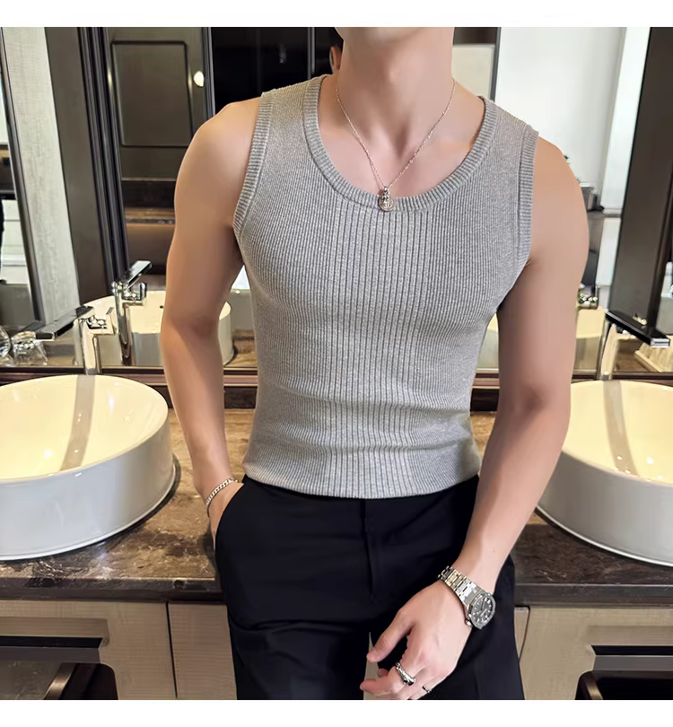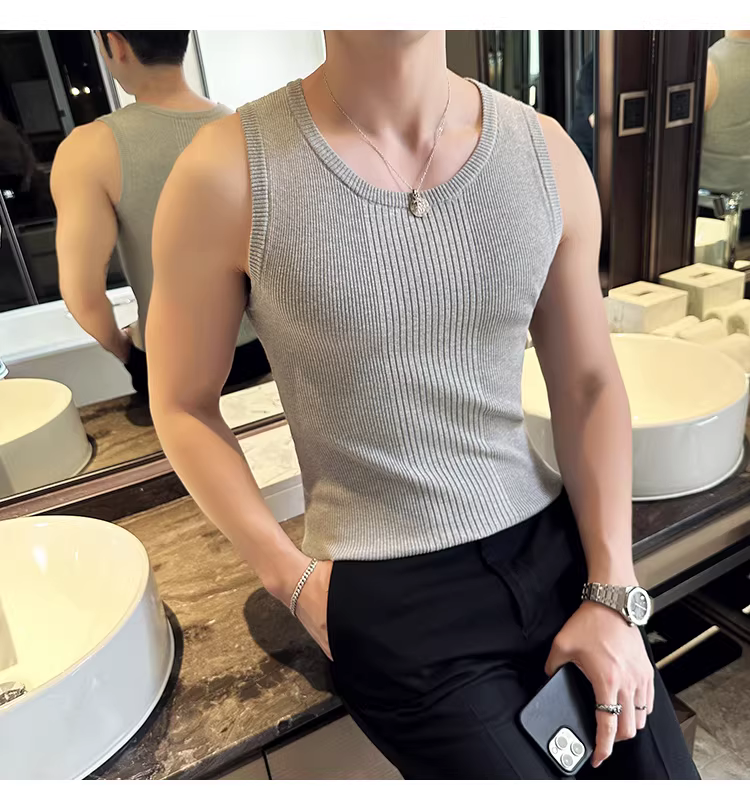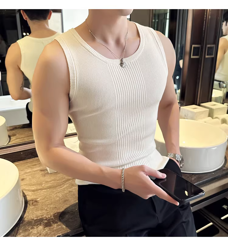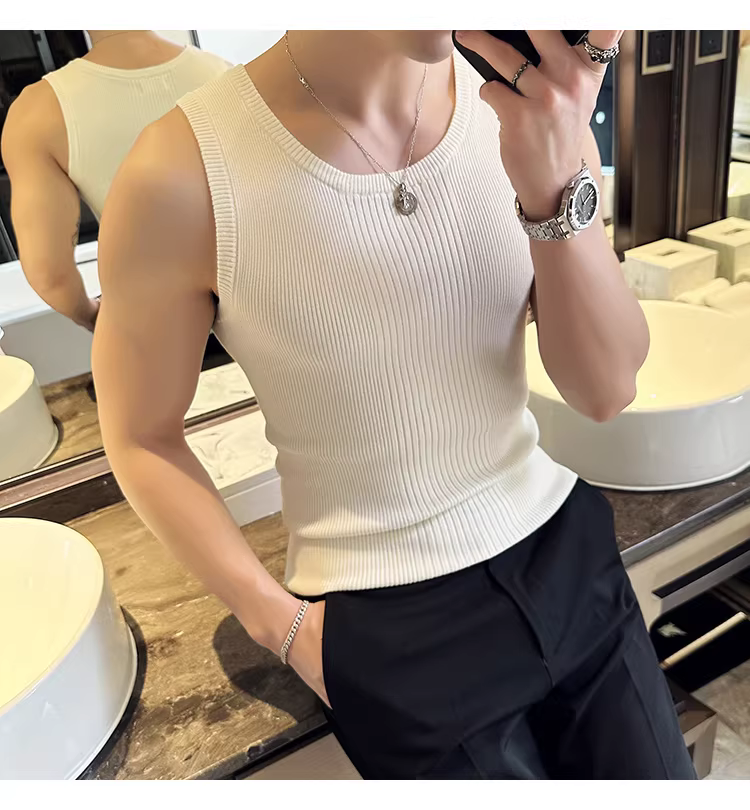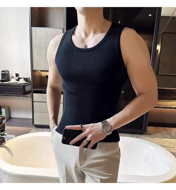 - Áo len nam cao cấp, kiểu dáng ôm sát, chất liệu thun co giãn, không tay, đa năng, thời trang, áo lót mặc trong phong cách thường ngày.