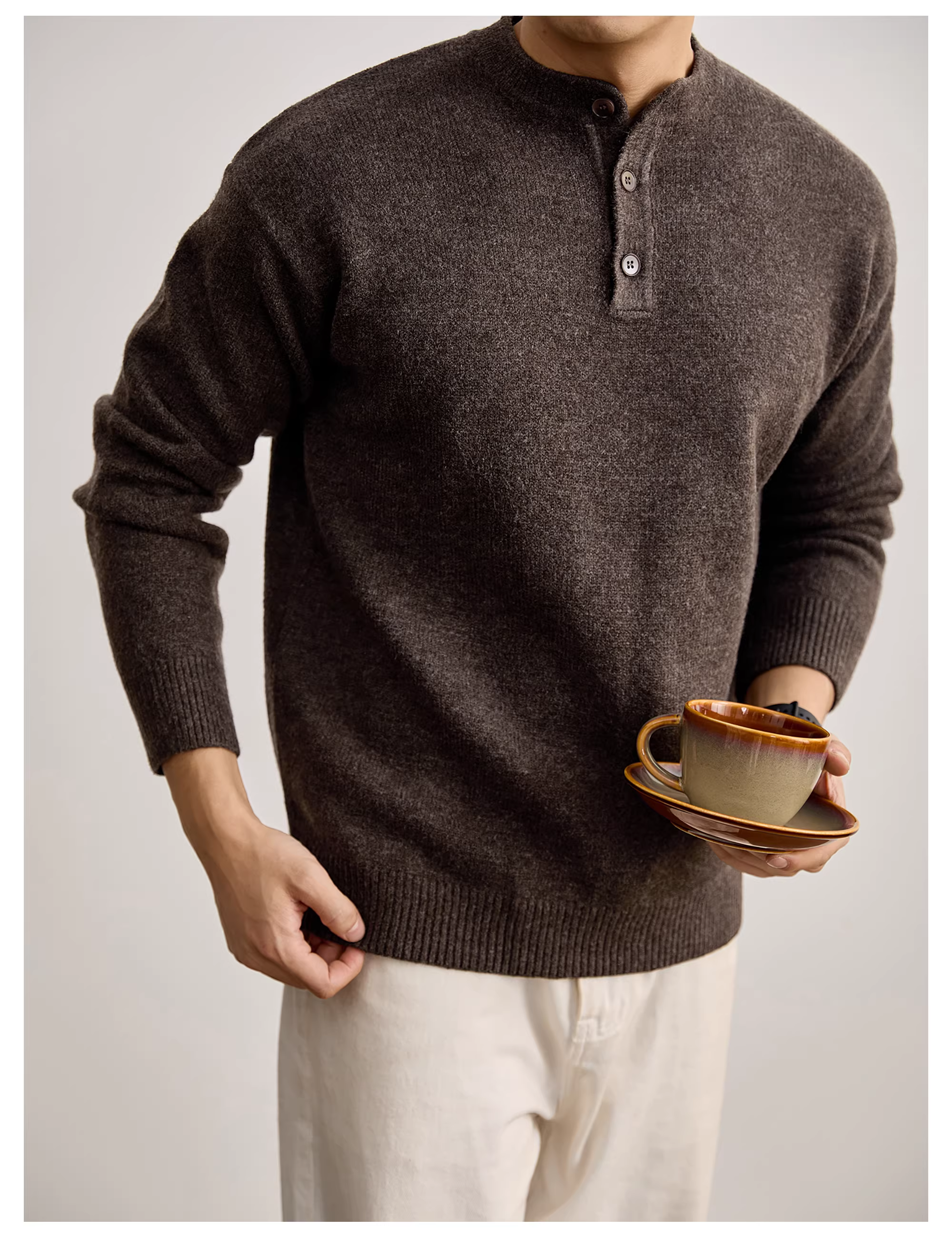 Áo len nam chất liệu len mềm kiểu dáng tiền cổ điển Mỹ, mùa thu đông, cổ henley chải mềm