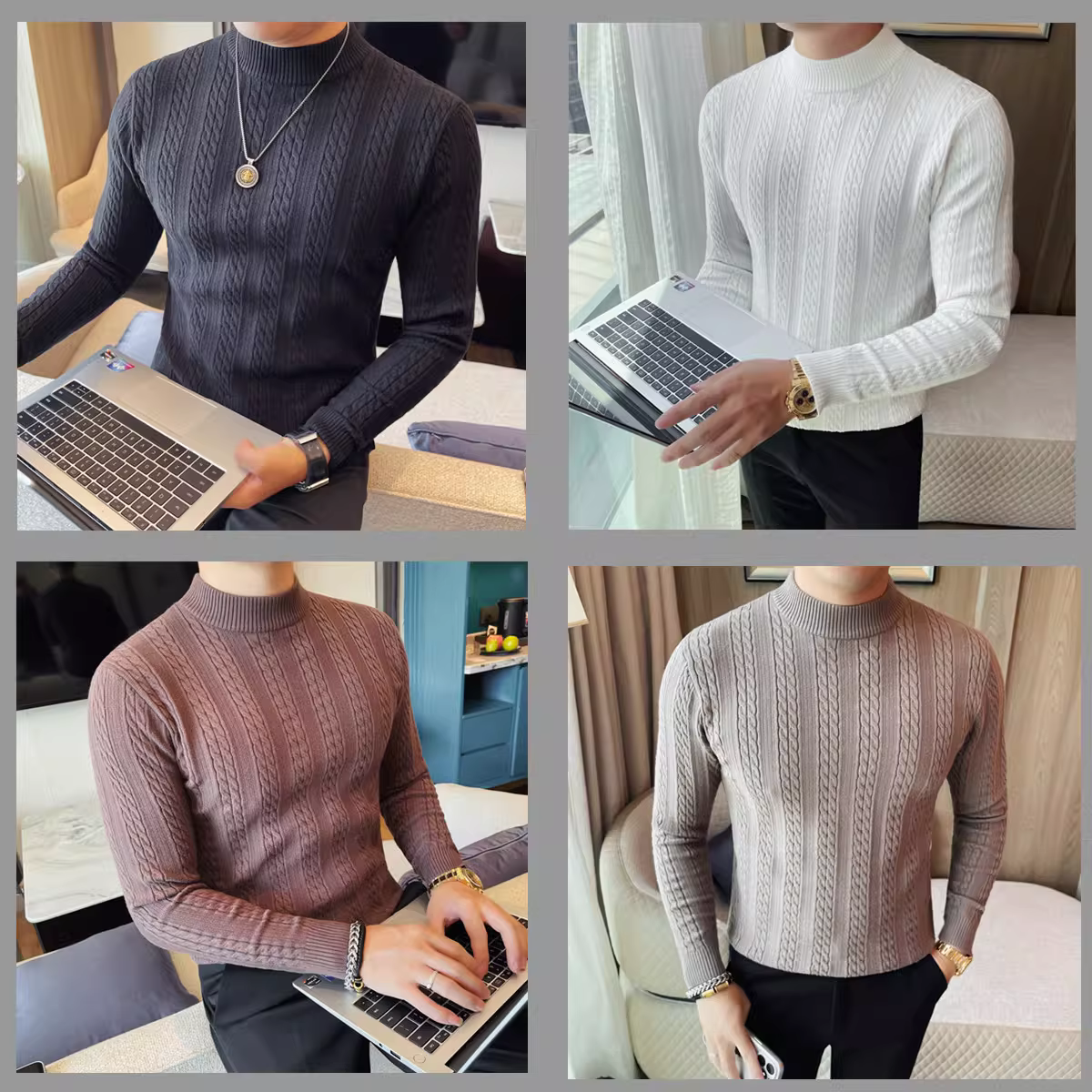 - Áo len nam cổ lọ dày dặn, tay dài, kiểu dáng mới mùa thu đông, ôm body, đa năng, chất liệu len dệt kim cổ trung.