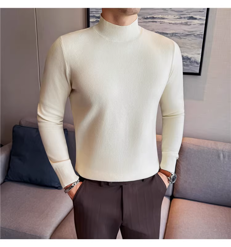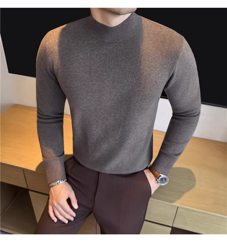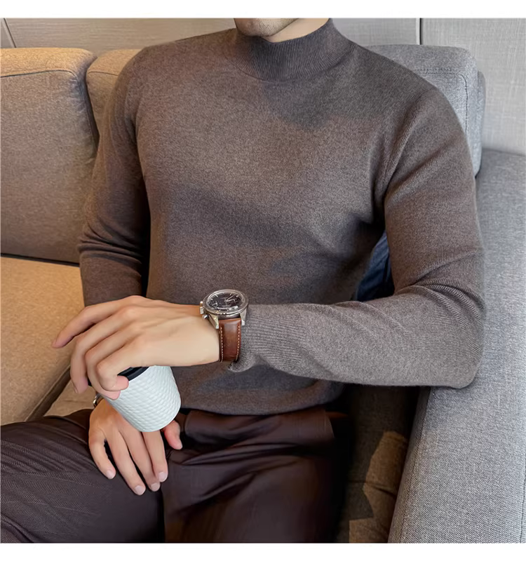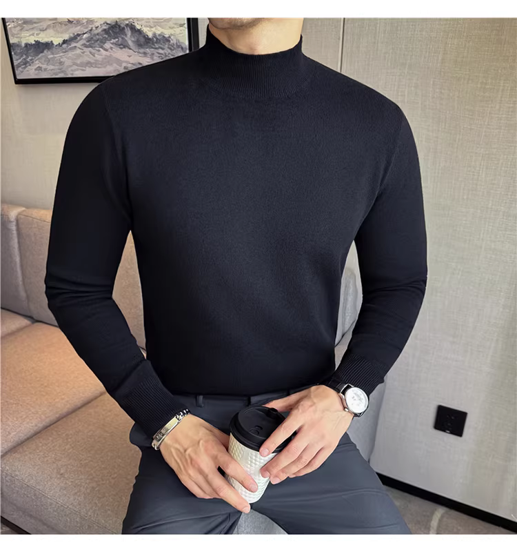 - Áo len nam cổ lọ nửa cao, chất liệu len modal, tay dài, kiểu dáng mùa đông mới, thời trang và đa năng, lớp lót dệt kim ấm áp.