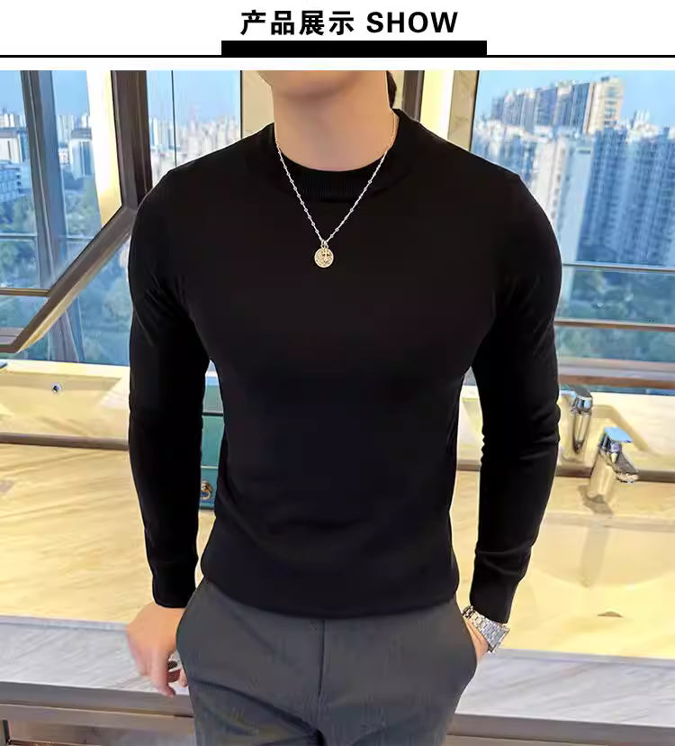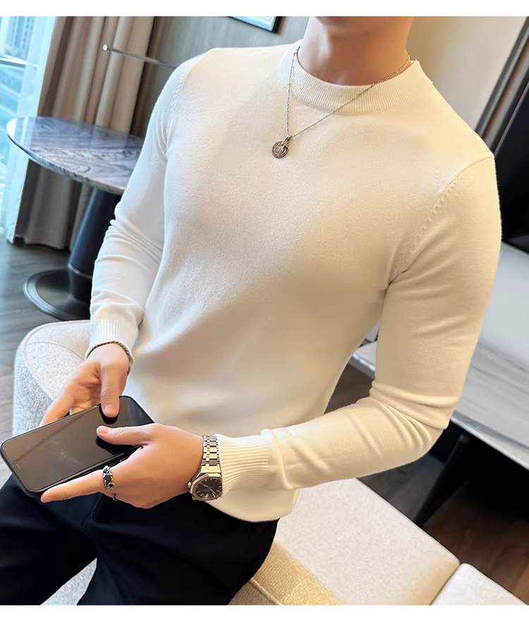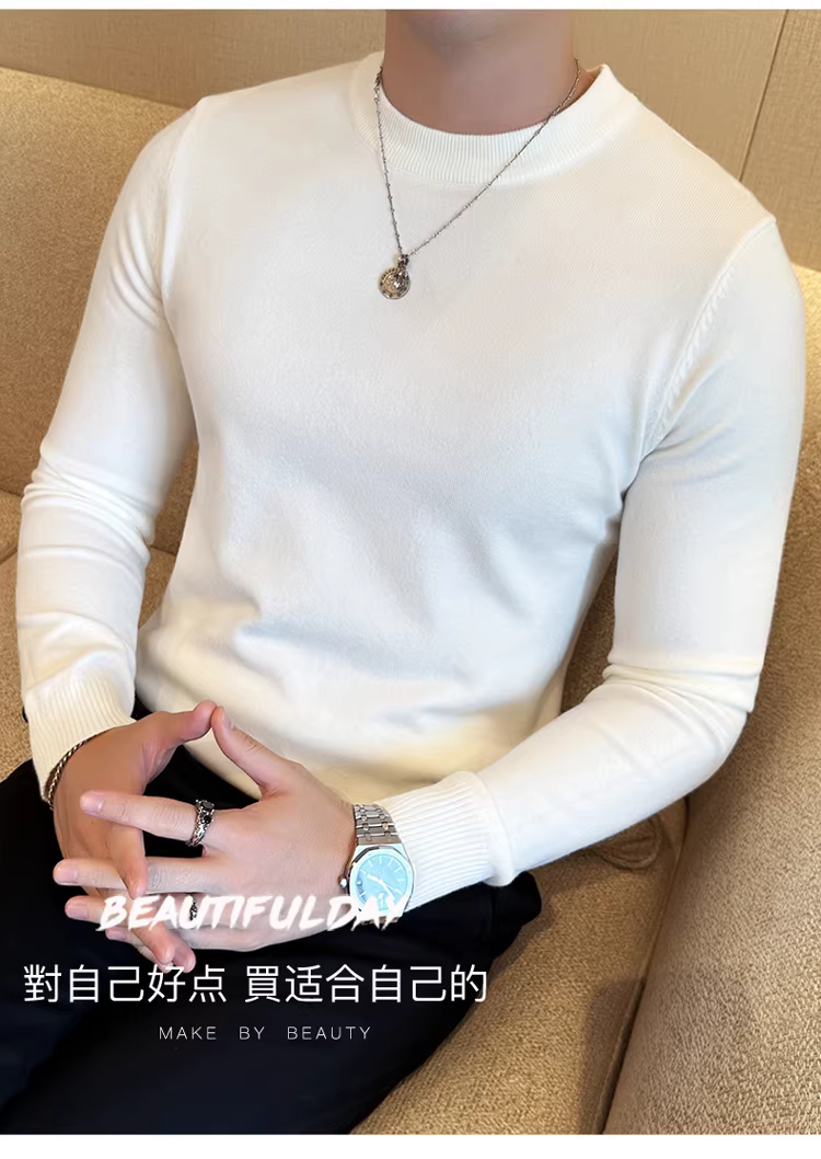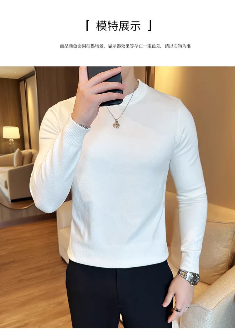 - Áo len nam cổ tròn dài tay thu đông 2024 mới màu trơn đa năng phong cách Hàn Quốc dáng ôm dệt kim
