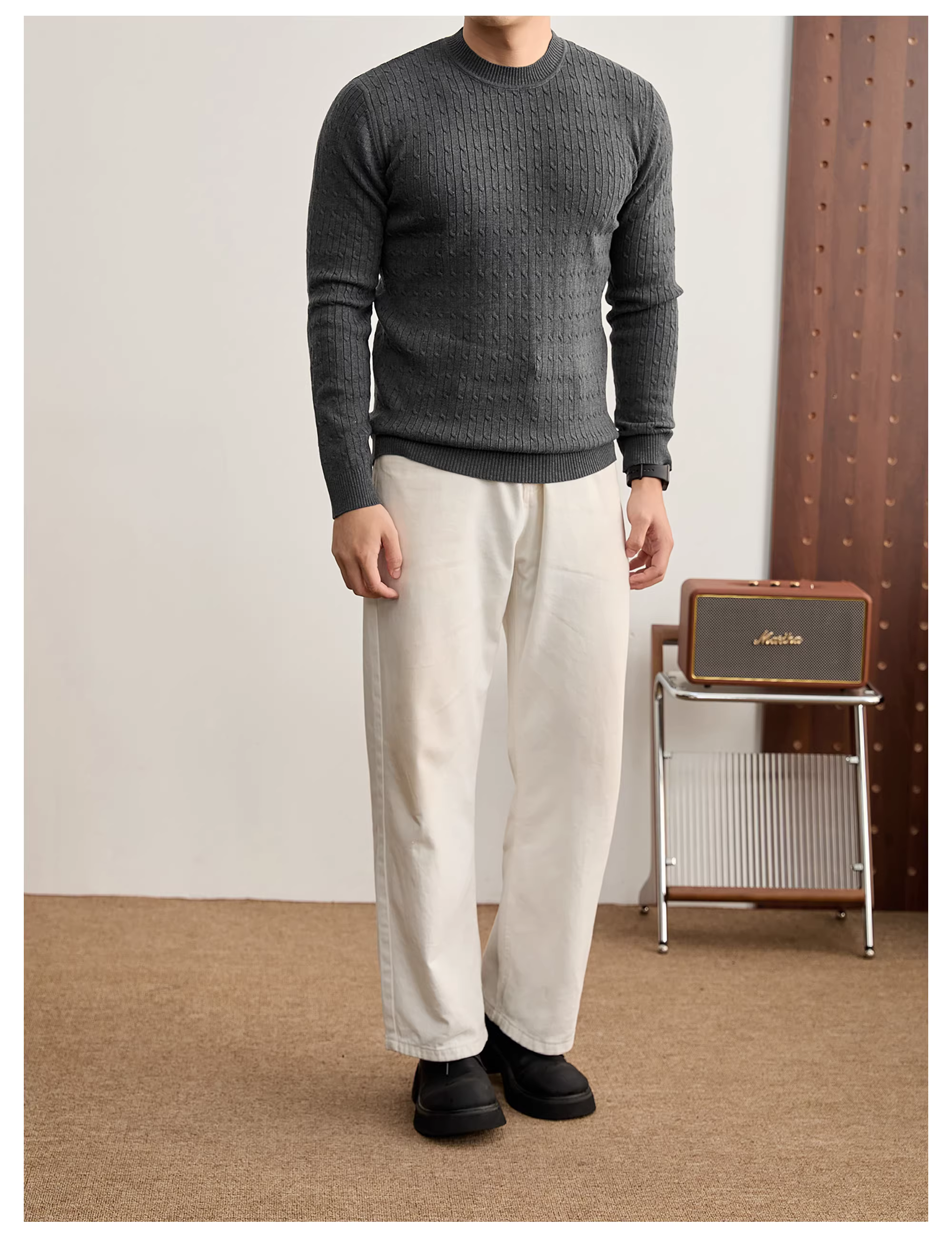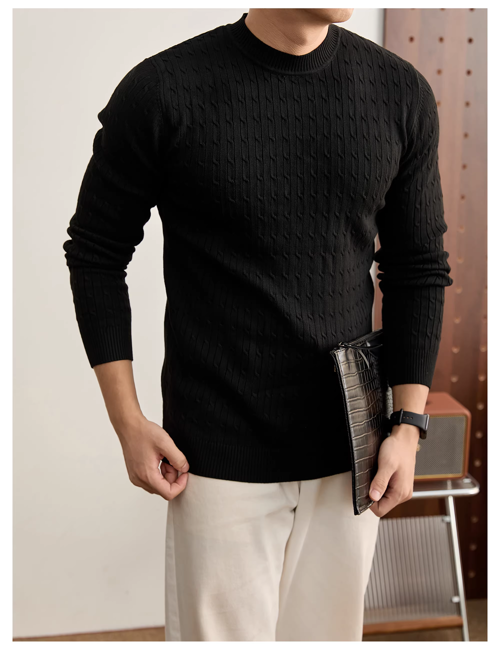 - Áo len nam cổ tròn dệt kim kiểu cáp, phong cách vintage, sang trọng, thời thượng, chất liệu mềm mại, ấm áp mùa đông.