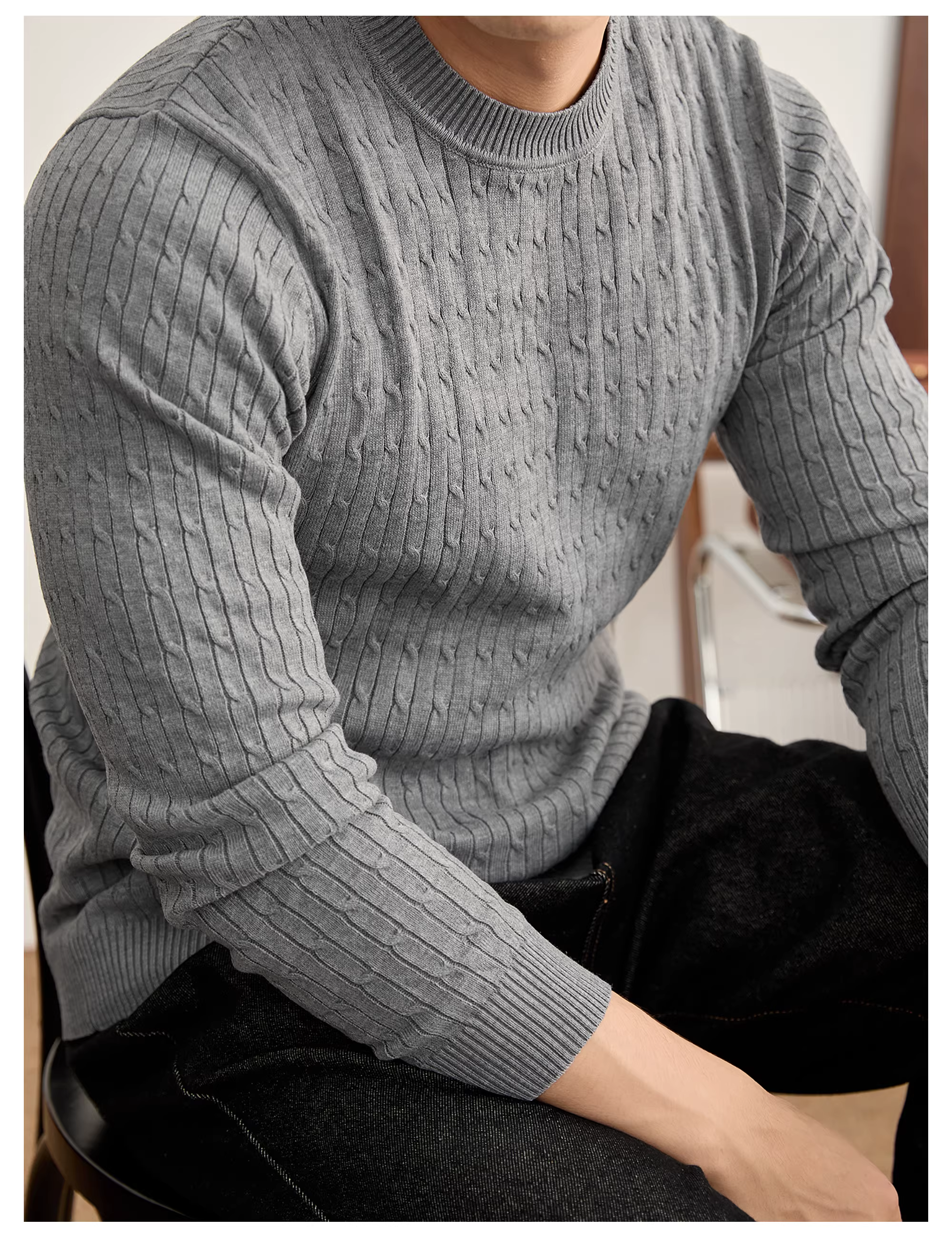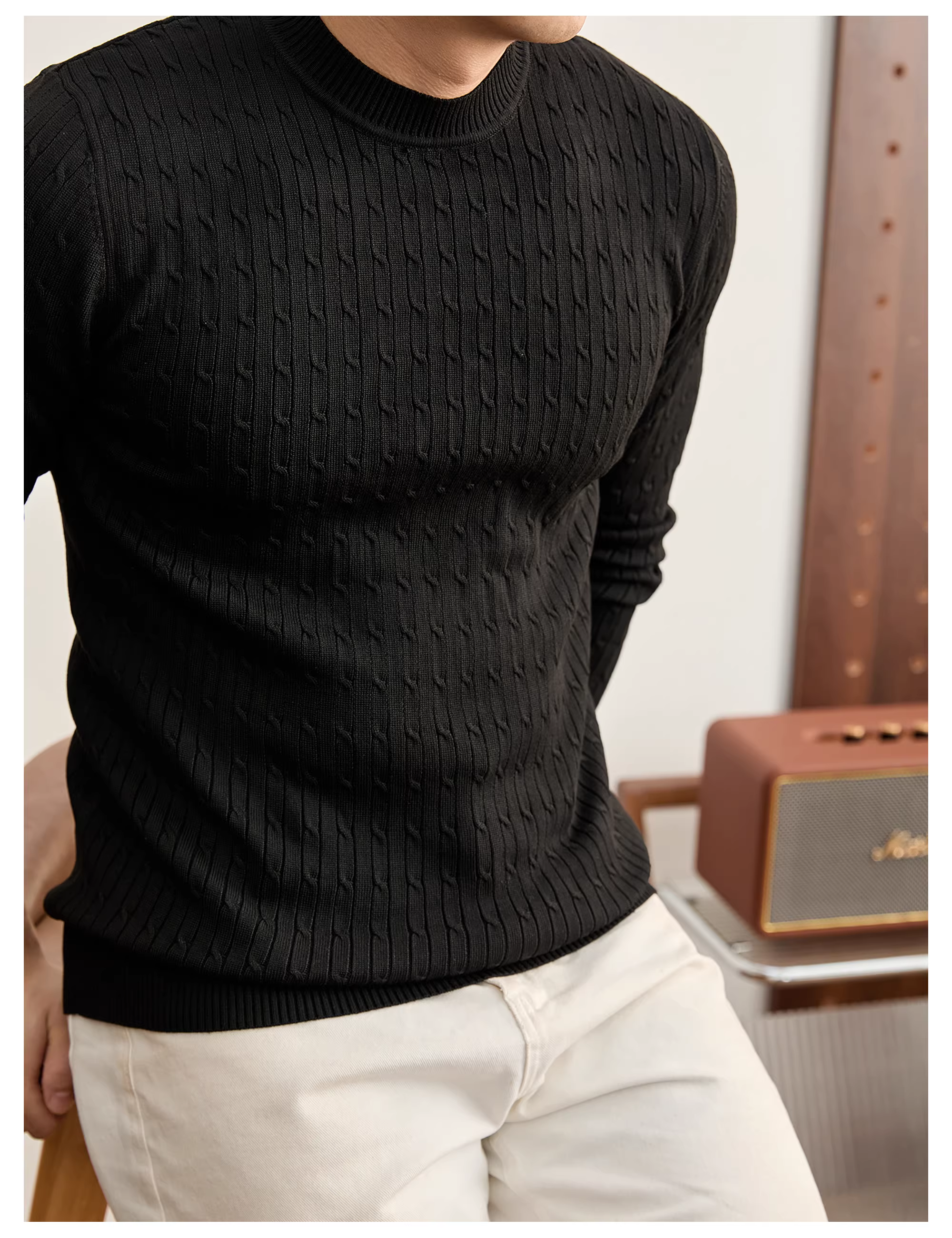 Áo len nam cổ tròn dệt kim kiểu cáp, phong cách vintage, sang trọng, thời thượng, chất liệu mềm mại, ấm áp mùa đông.