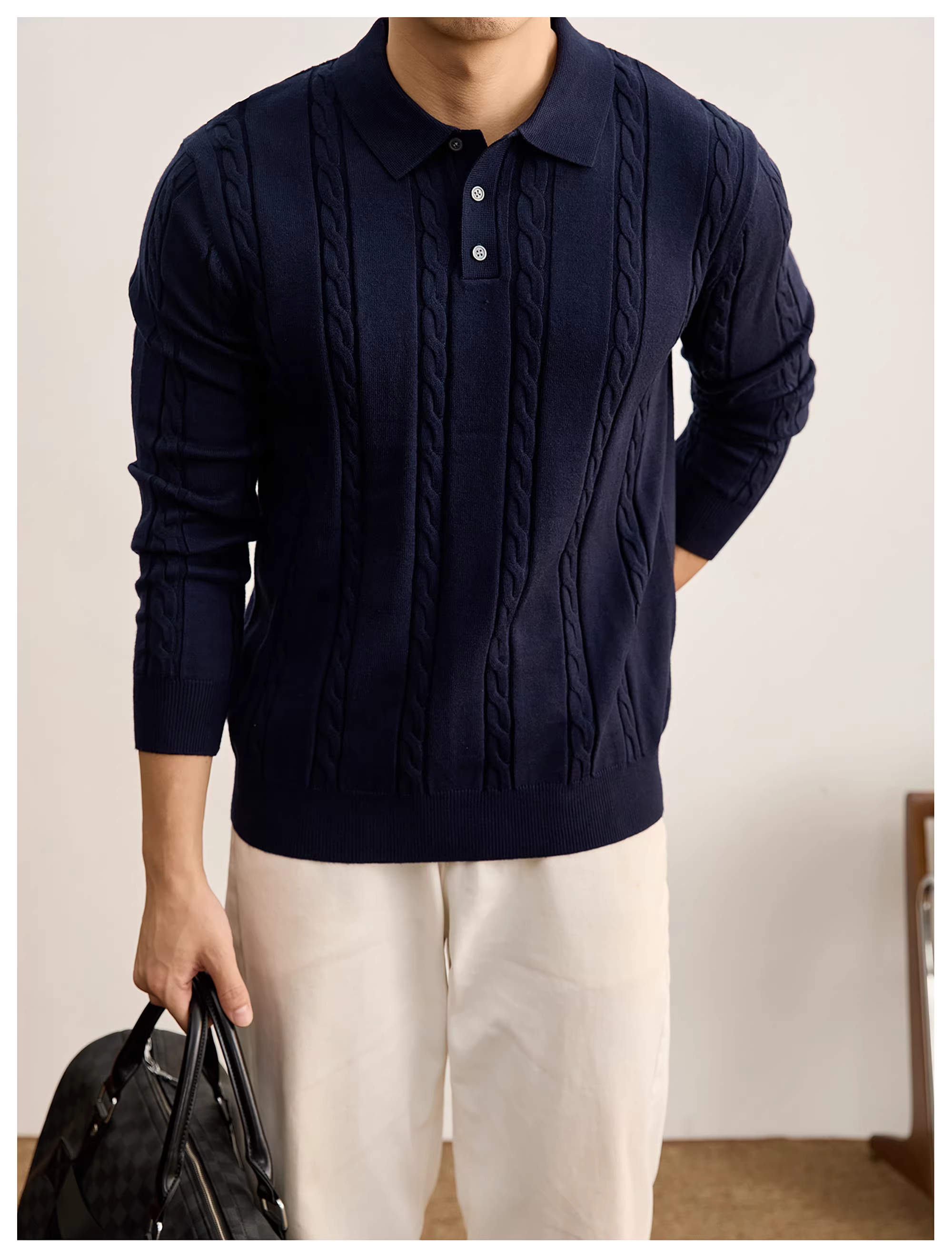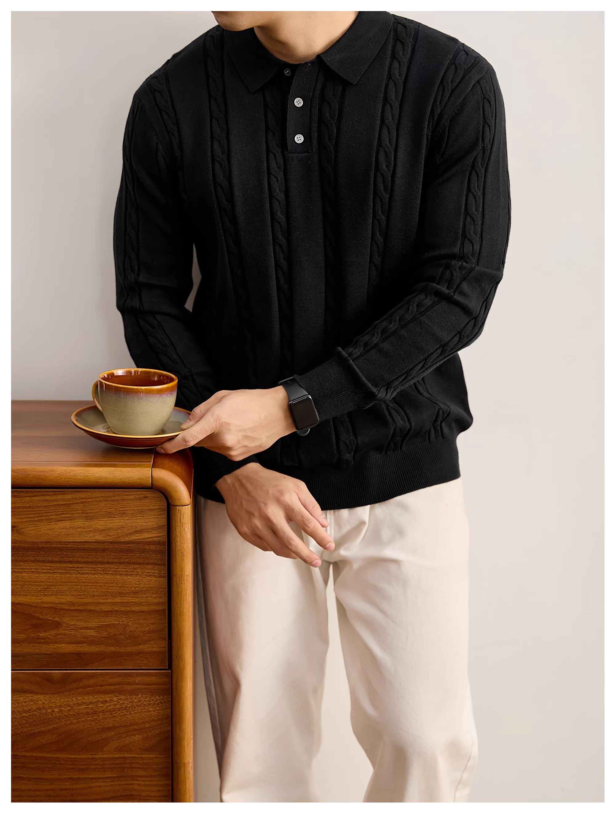 - Áo len nam cổ trụ màu đen phong cách LUUD, chất liệu dệt kim ba chiều, tay dài, kiểu dáng áo polo, thích hợp cho mùa thu đông.