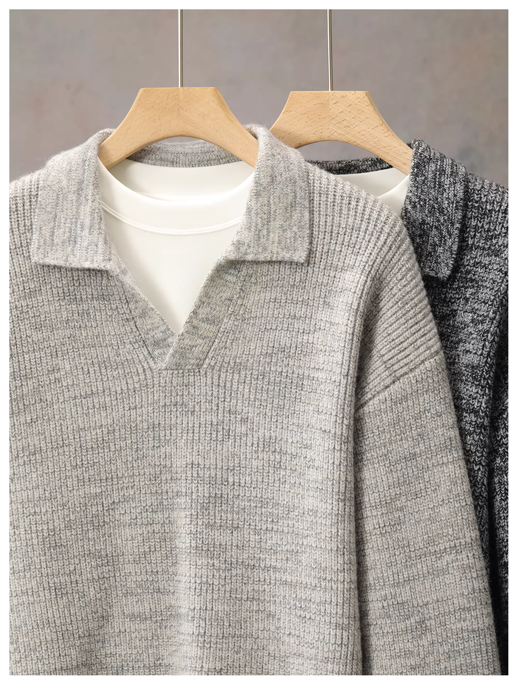 Áo len nam cổ V nhỏ thời trang JIEYI chống xù, chất liệu pha sợi thô, phong cách Nhật Bản, kiểu dáng nghệ thuật.
