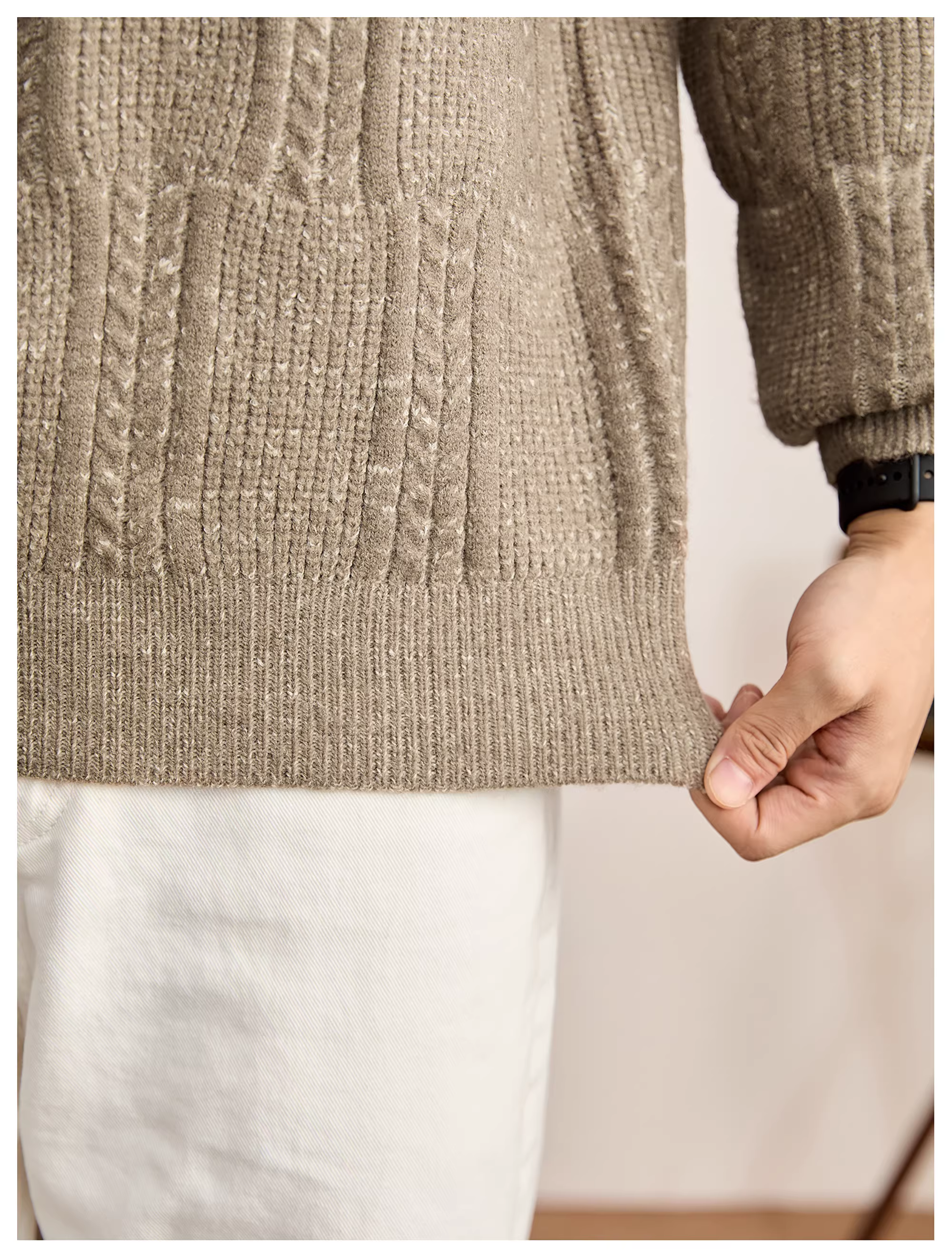 Áo len nam LUUD kiểu dáng thanh lịch, chất liệu vải gân kiểu tiền cổ, họa tiết bó lúa mùa thu đông, phối màu jacquard, trọng lượng cao 690g