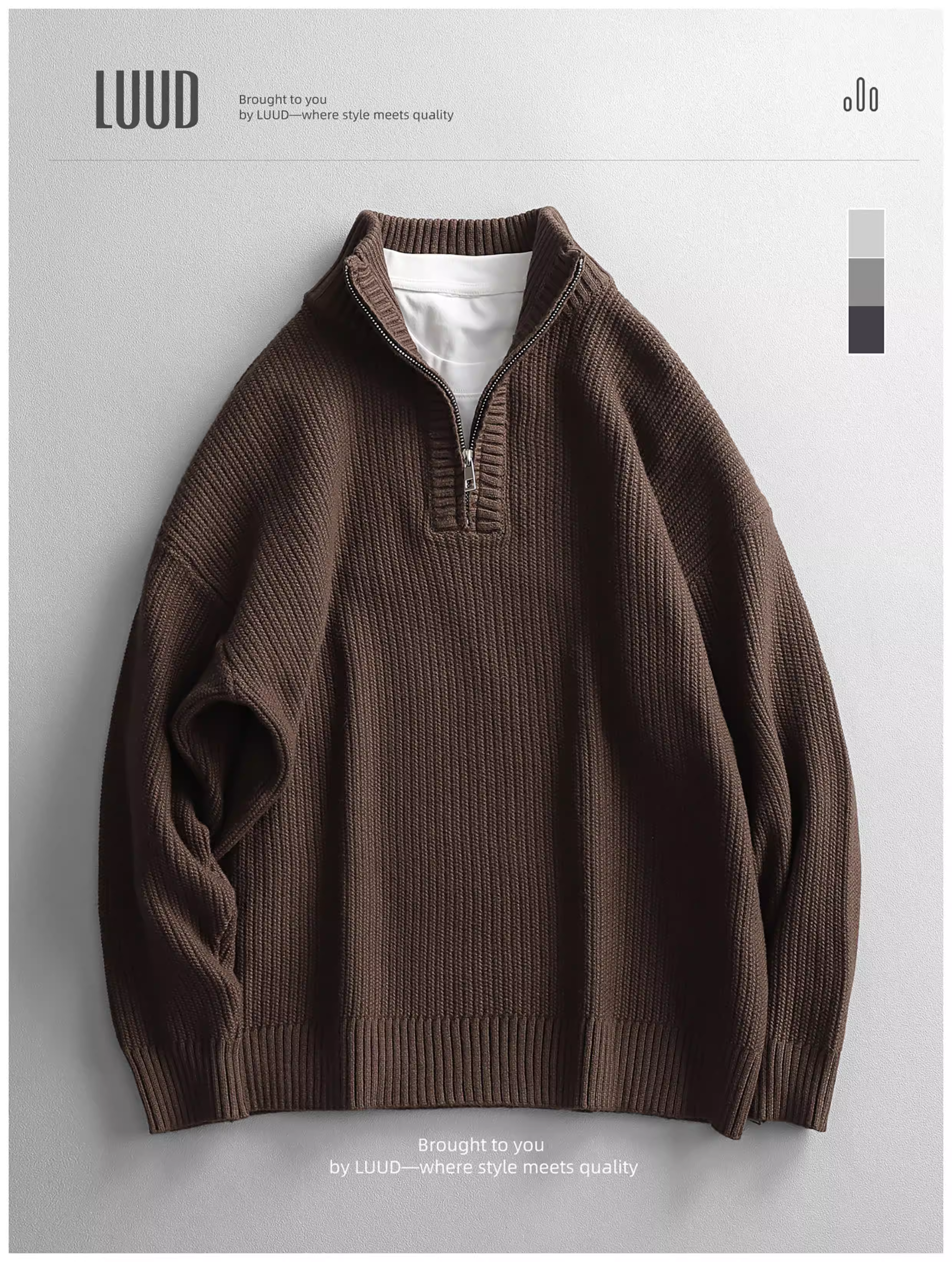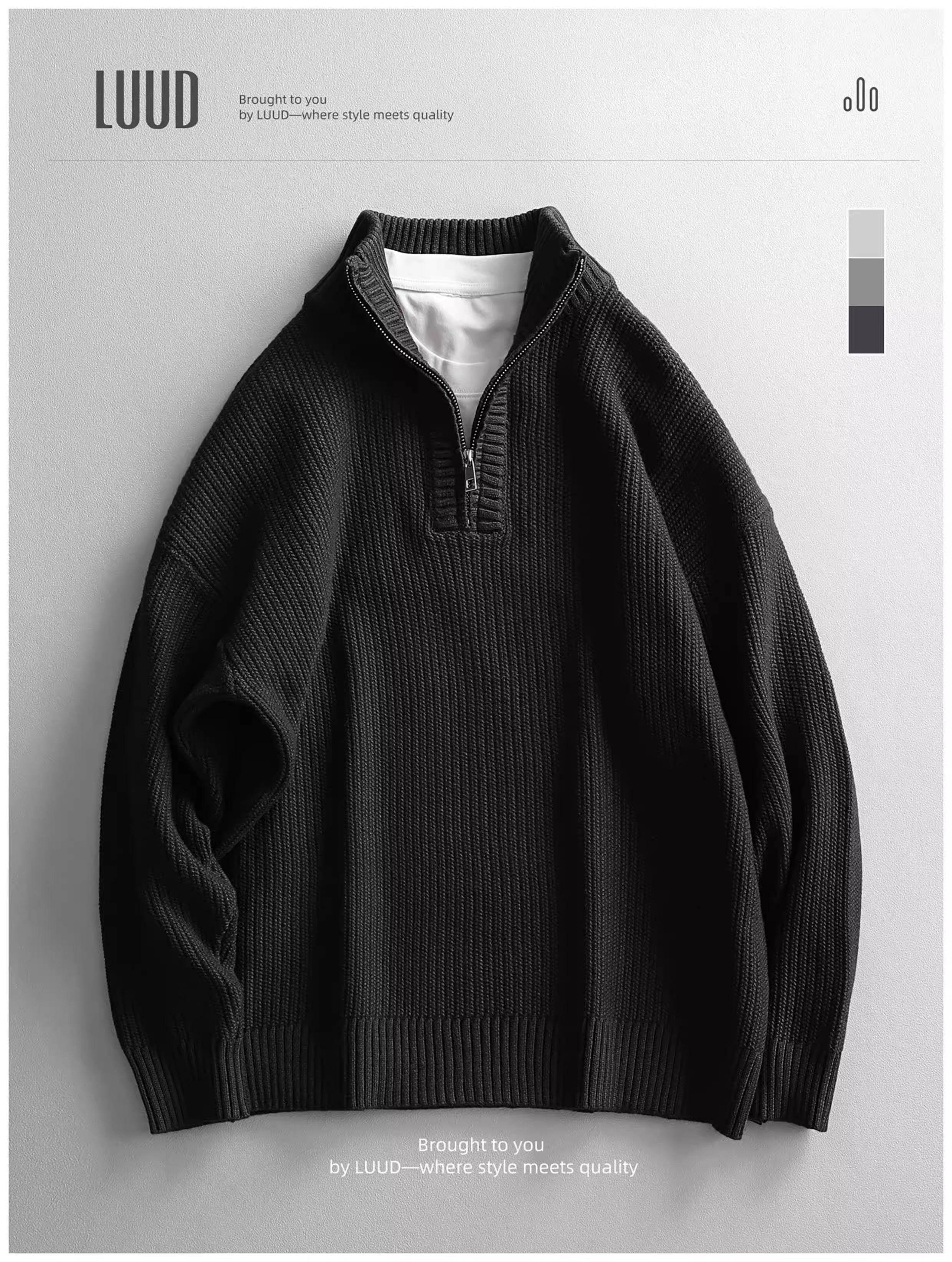 - Áo len nam LUUD thời trang đô thị, kiểu nửa khóa kéo, chất liệu dệt jacquard đơn giản, kiểu áo len cổ lọ nửa cao