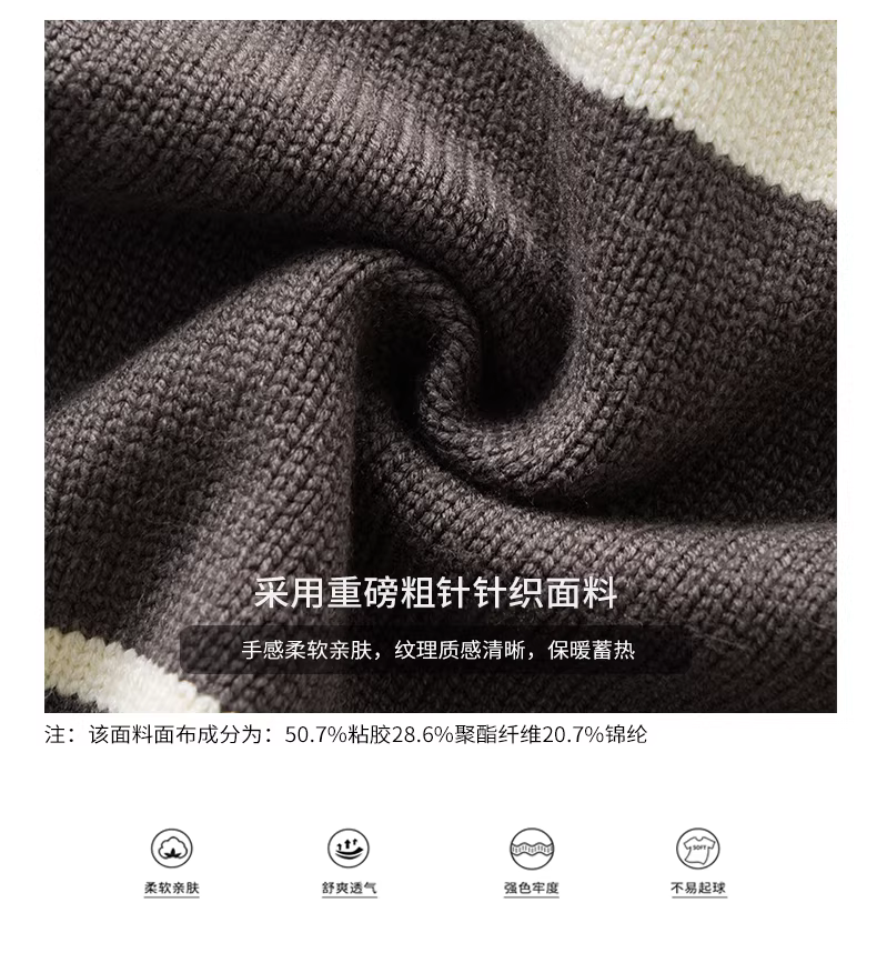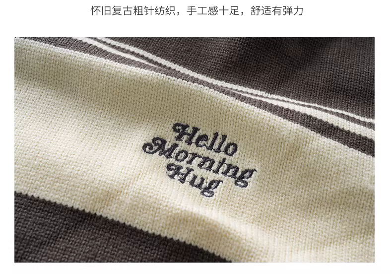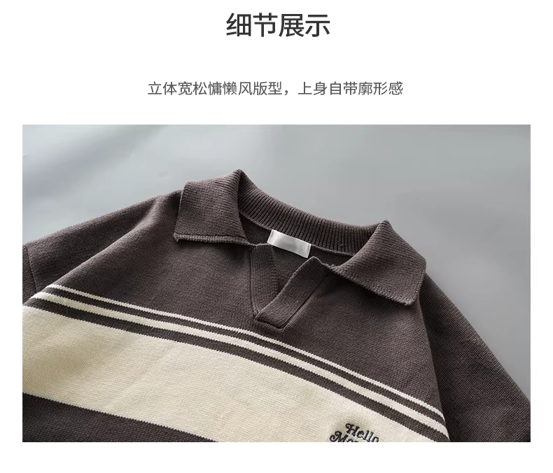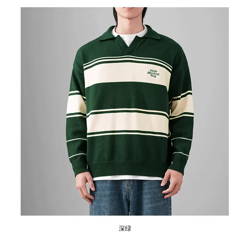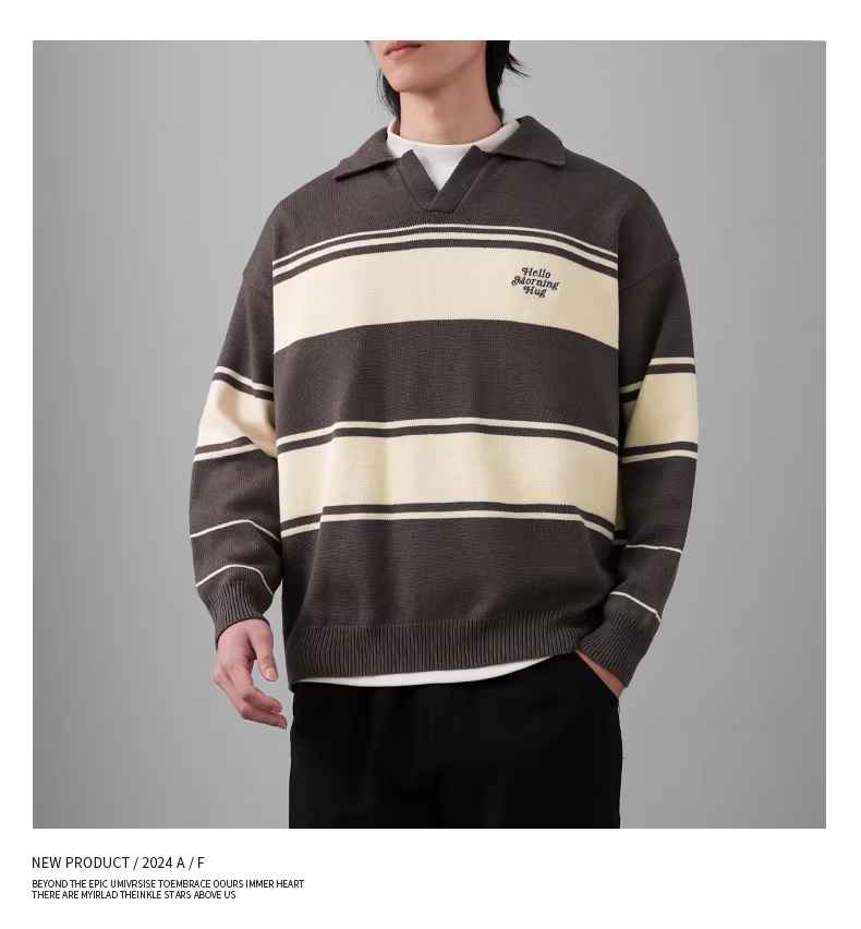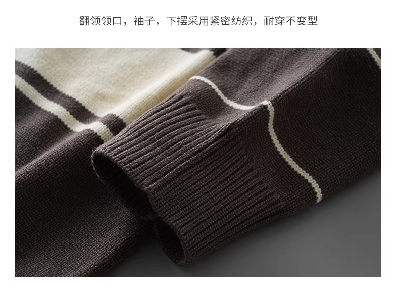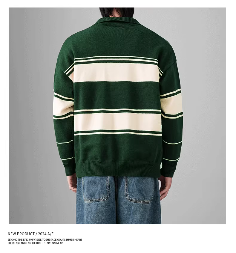 Áo len nam OMZM cổ V sọc, mùa đông 2024, kiểu cổ POLO retro, phong cách lười, phối màu tương phản