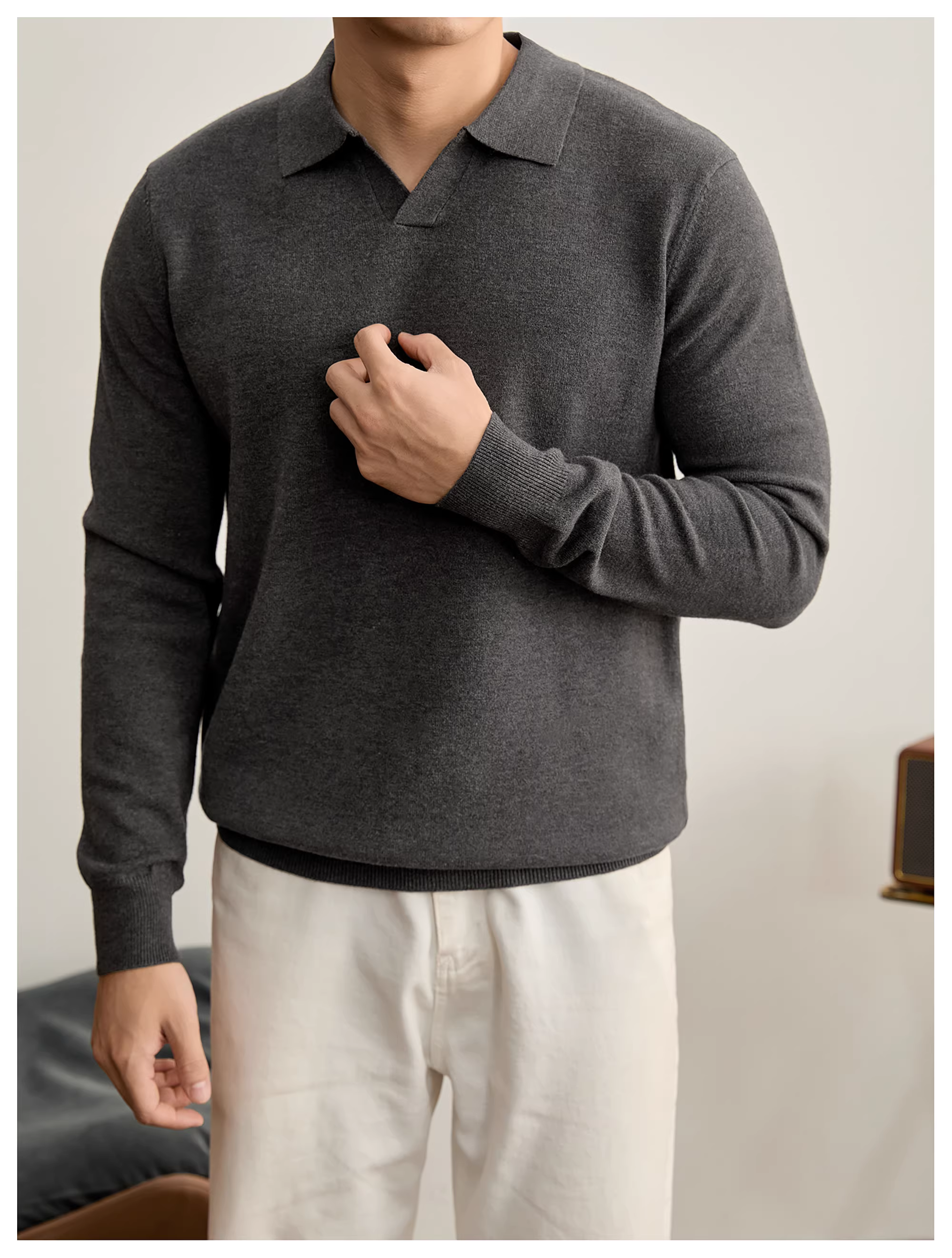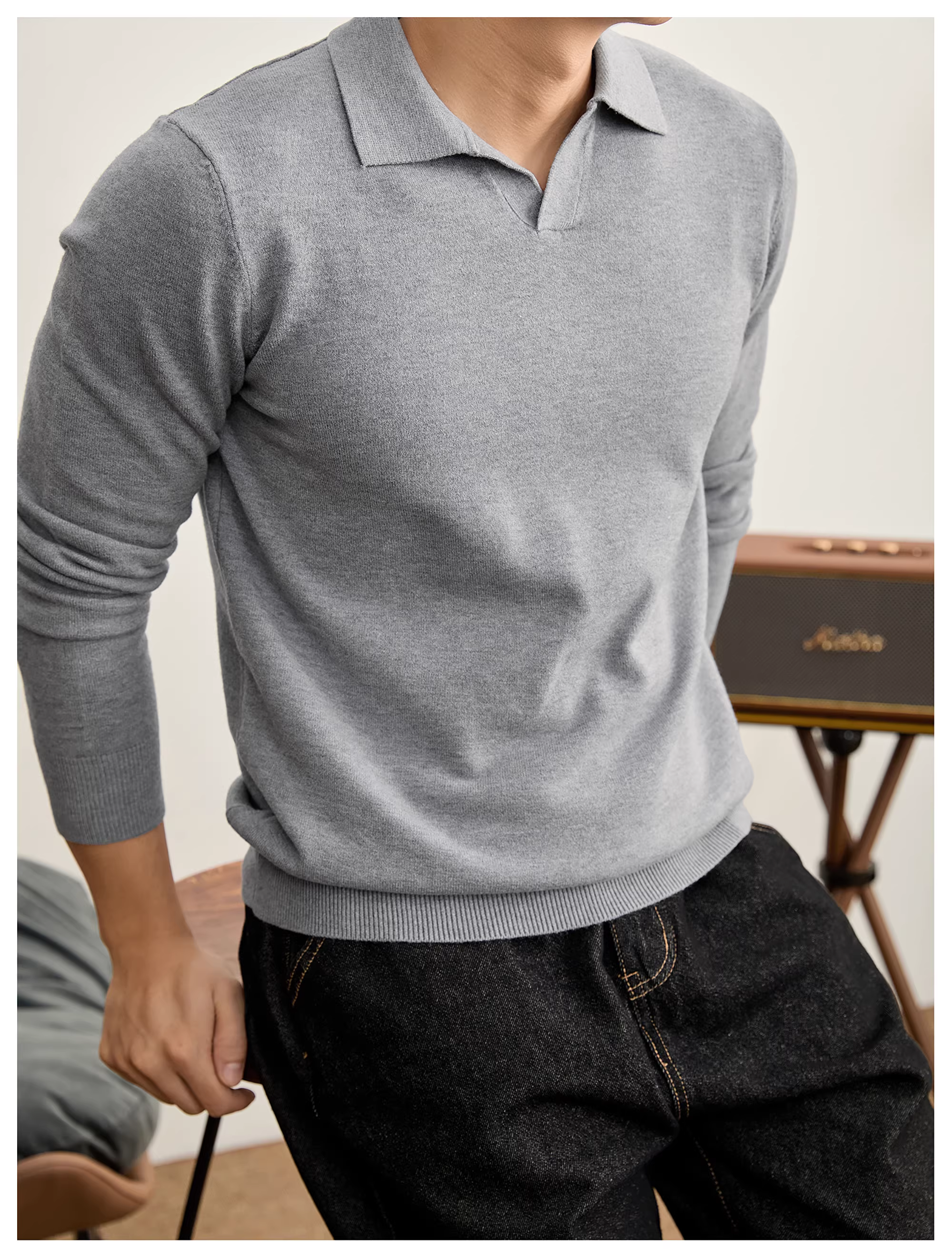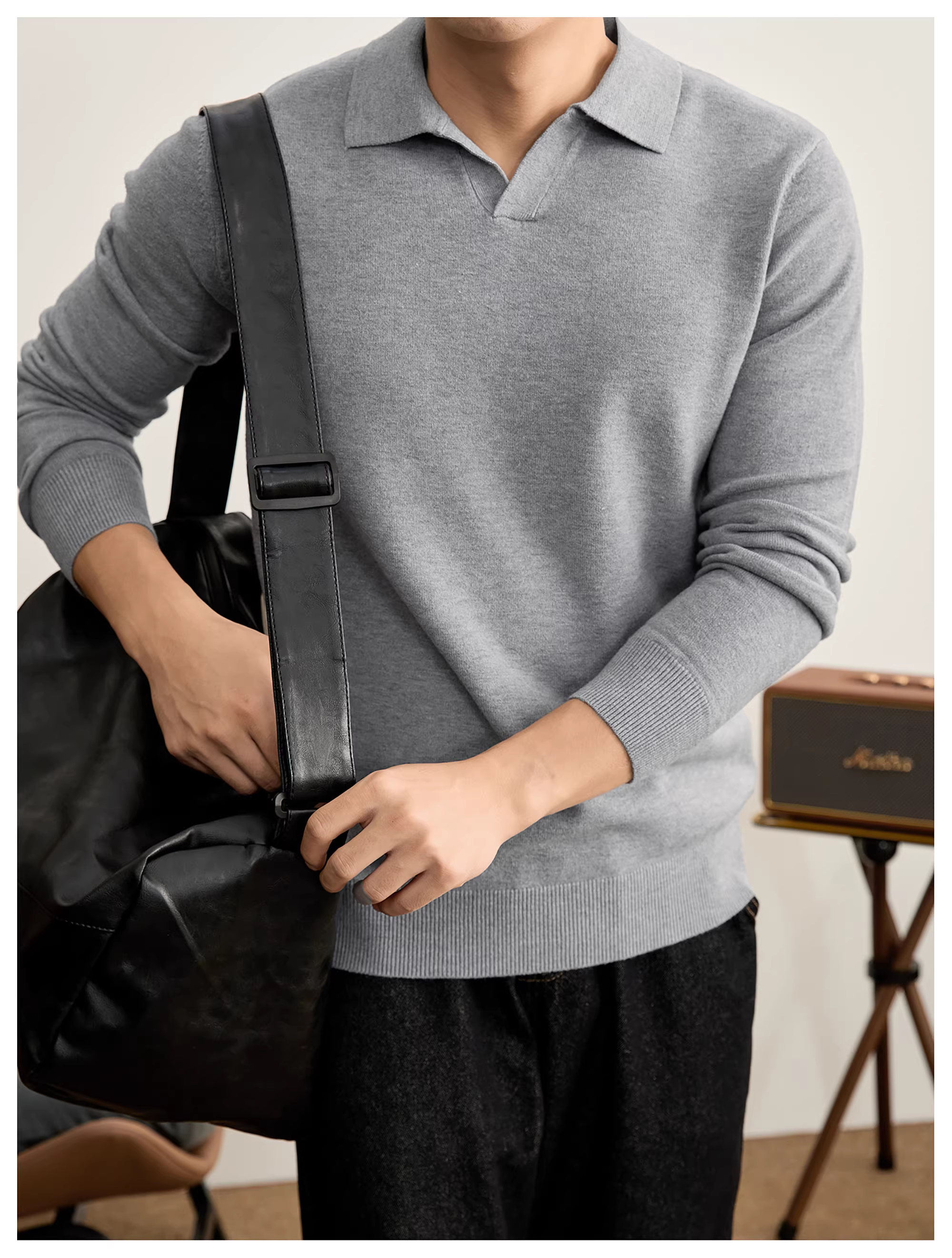 Áo len nam thanh lịch của LUUD, chất liệu len pha, dệt kim, mùa thu đông, màu trơn, cổ áo hình chim hải âu, phong cách giản dị.