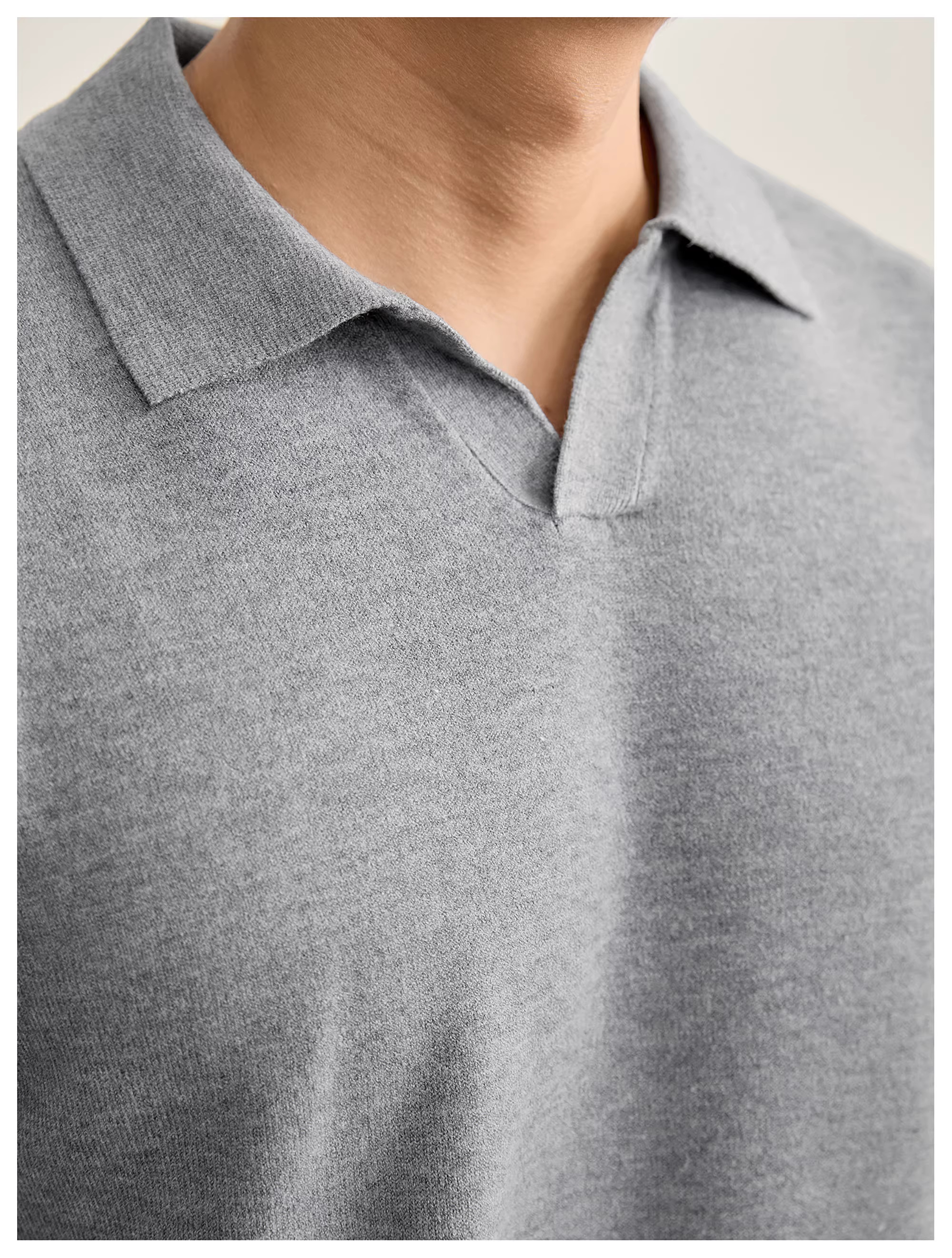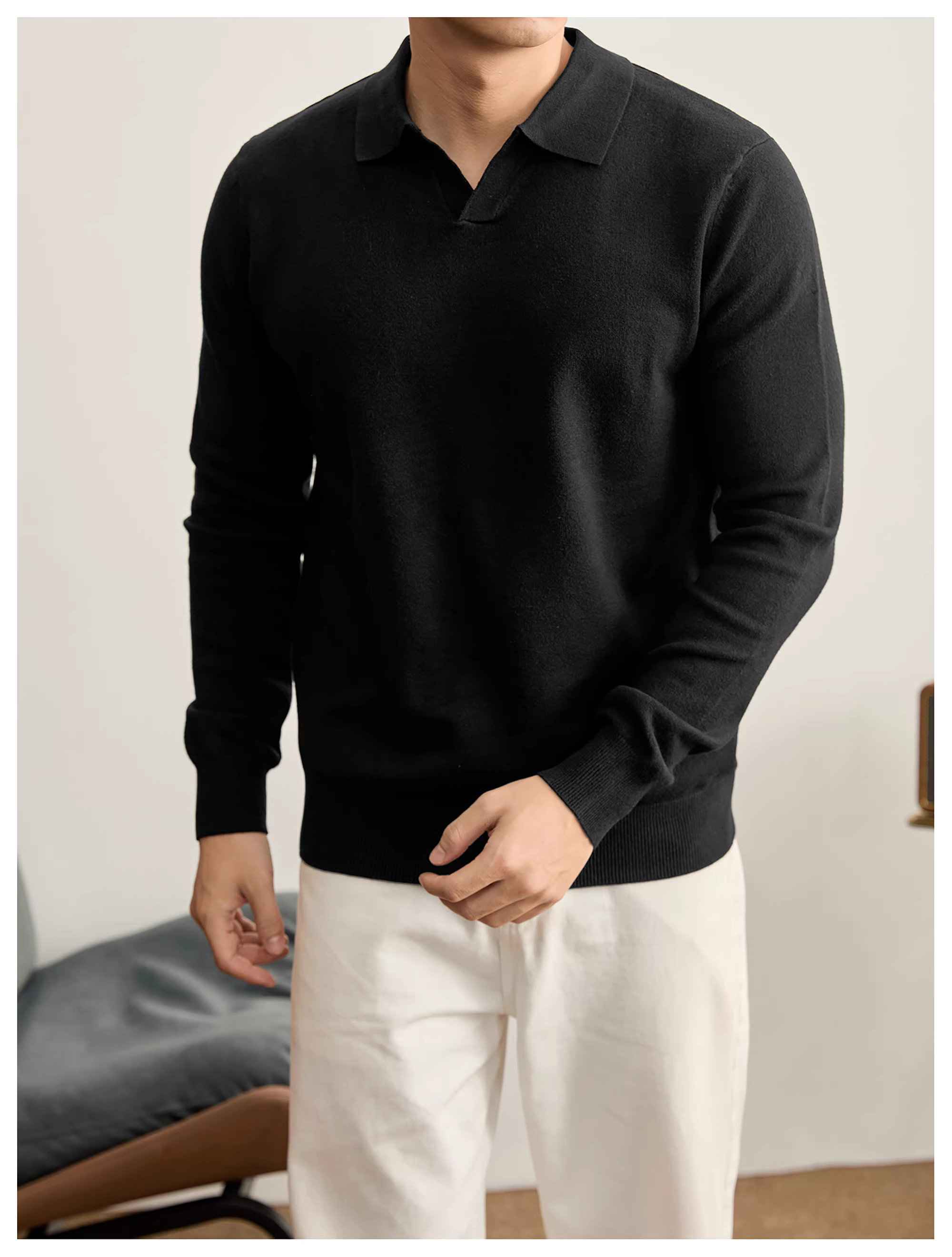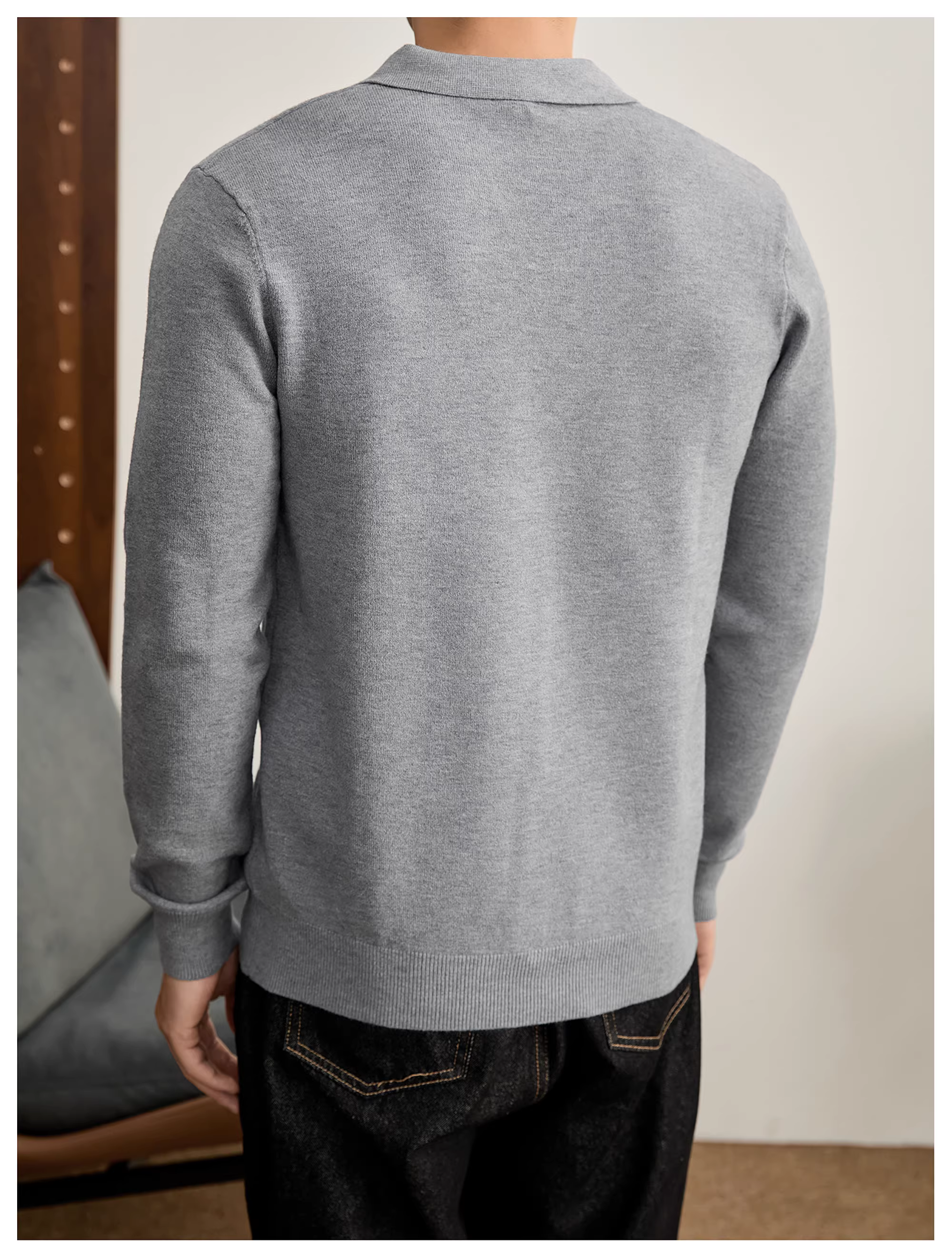 Áo len nam thanh lịch của LUUD, chất liệu len pha, dệt kim, mùa thu đông, màu trơn, cổ áo hình chim hải âu, phong cách giản dị.