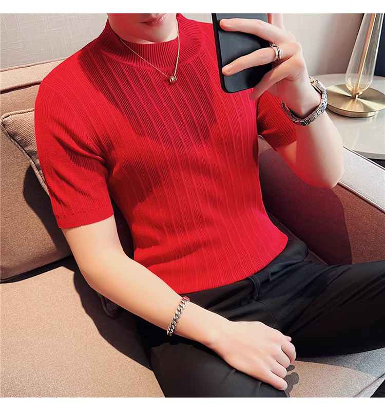 - Áo len ngắn tay cổ cao nửa cổ mùa xuân thu dành cho nam, giản dị, đa năng, hợp thời trang, thời trang, cao cấp, đẹp trai, phong cách trưởng thành