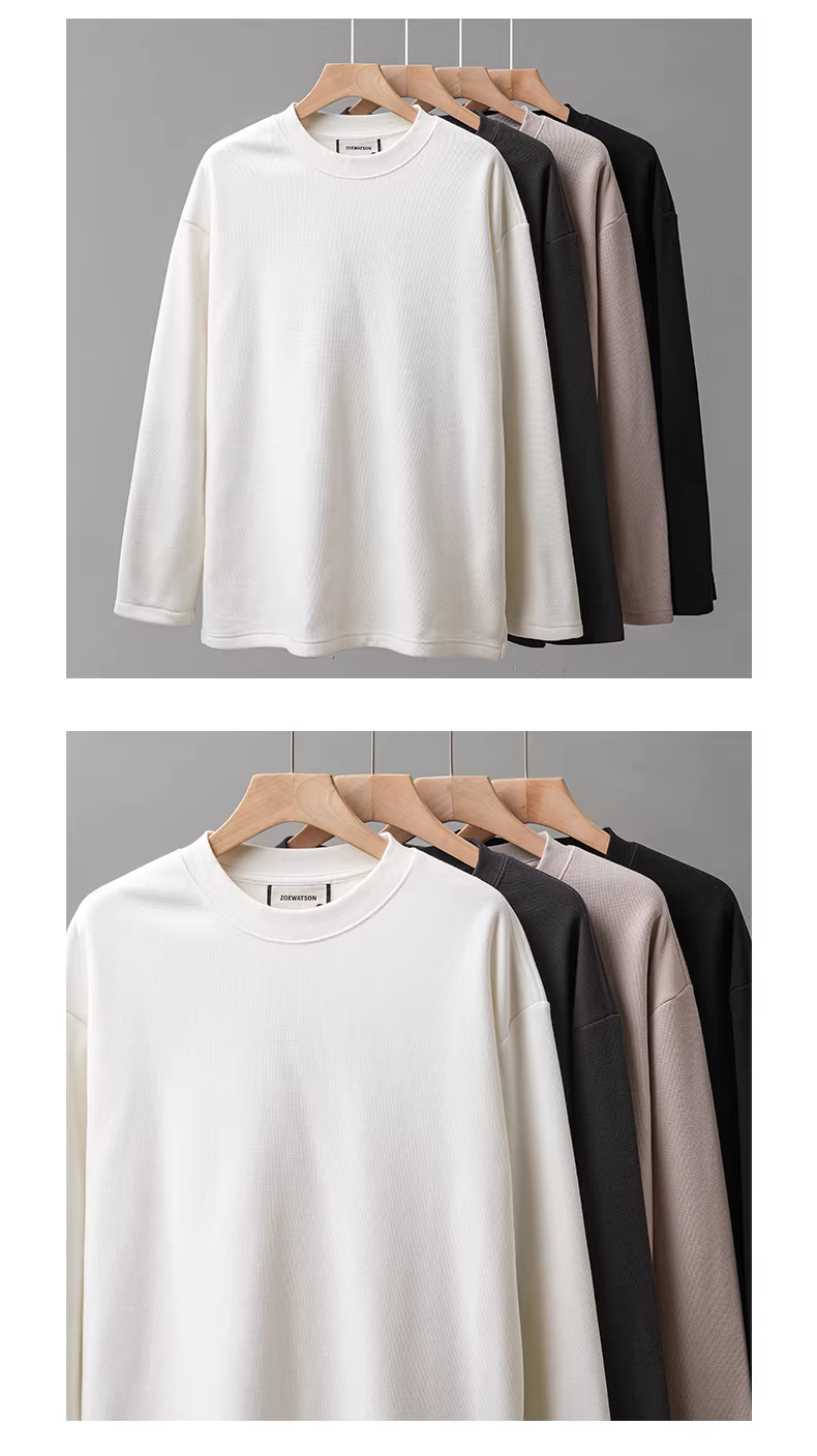 Áo len nỉ dày dặn 400G dành cho nam, mùa thu đông, màu trơn, dày dặn, ấm áp, tay dài, áo thun cổ tròn cao cấp chất liệu vải waffle.