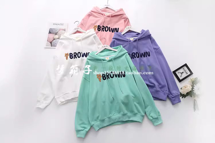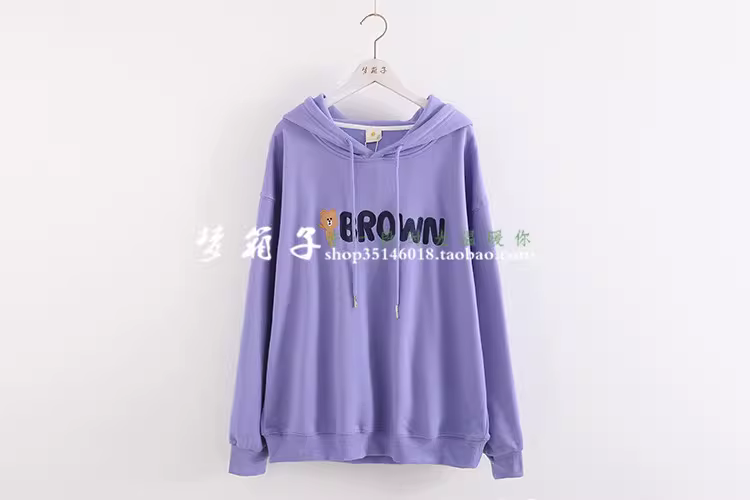 - Áo len nỉ nữ dáng rộng tay dài in thêu chữ Gấu nâu hoạt hình Dream Box Thu 2024