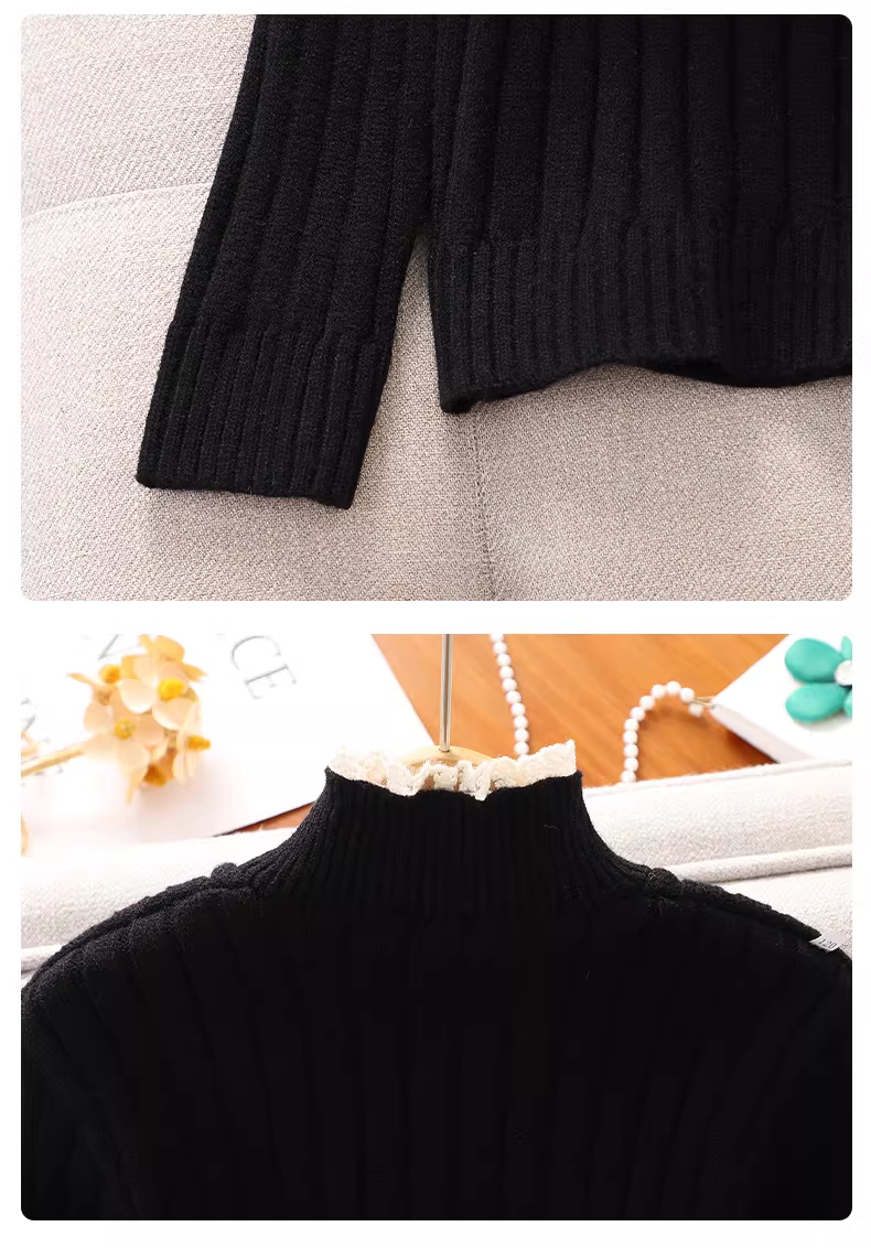 - Áo len nữ cho mùa thu đông, áo sơ mi dày dặn cổ lọ nửa cổ ôm sát cho trẻ em, áo len dệt kim ấm áp mùa đông cho bé gái lớn.