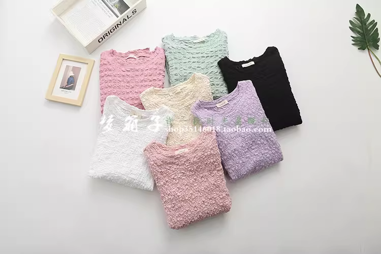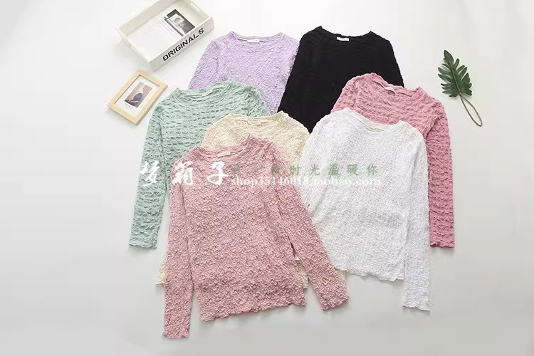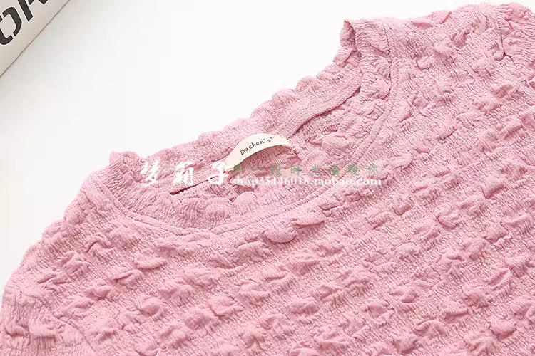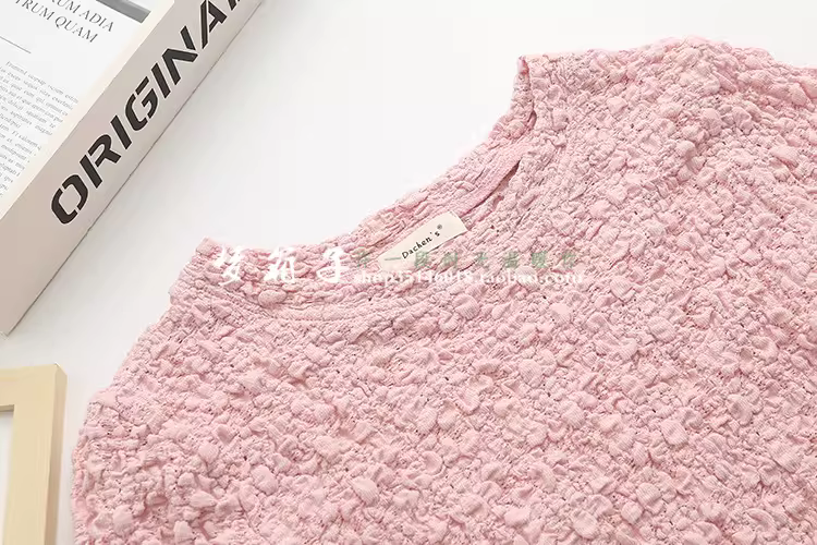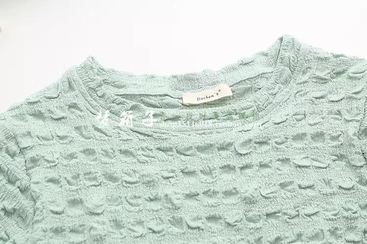 柔软的泡泡皱蕾丝面料,手感柔软,弹力很大,百搭甜美款