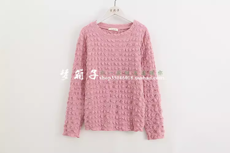 - Áo len nữ cổ tròn tay dài màu macaron ngọt ngào mùa xuân 2025 Dream Box, chất liệu bồng bềnh, co giãn cao, viền ren