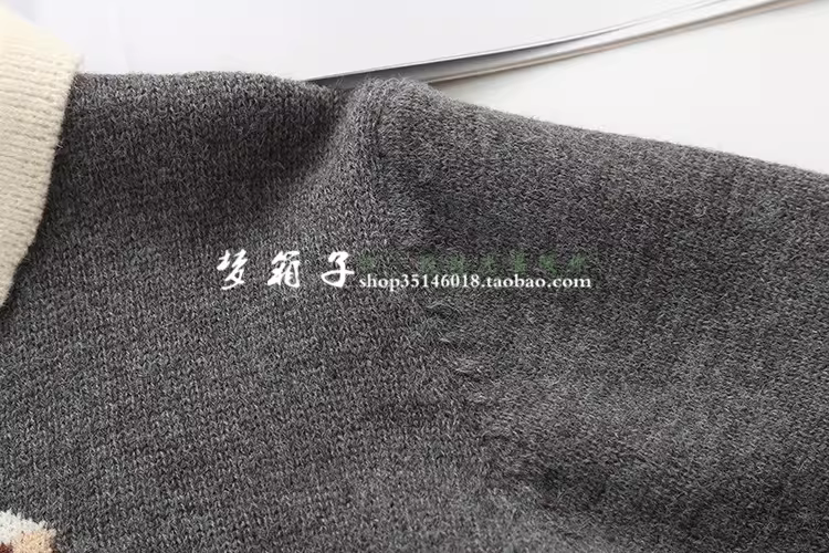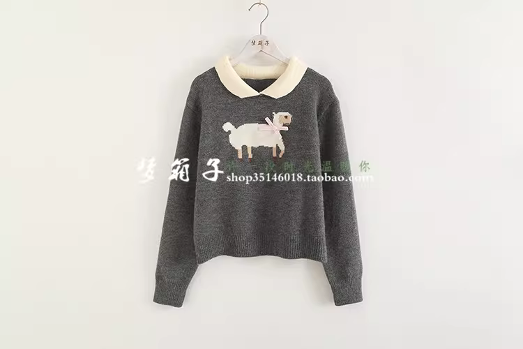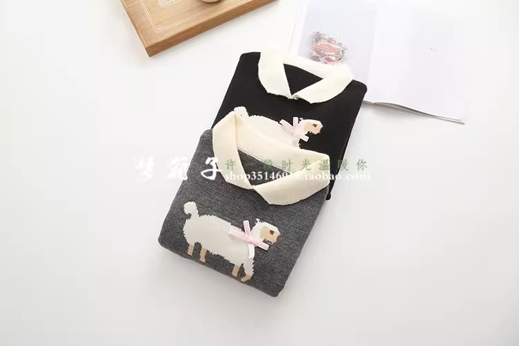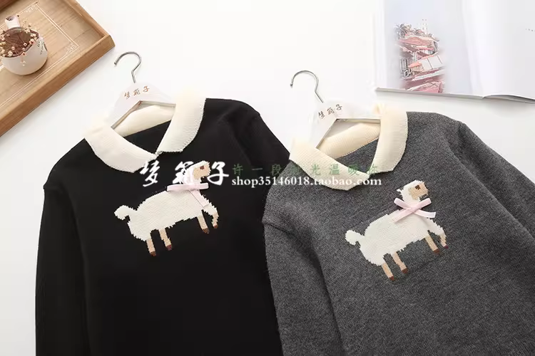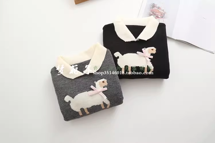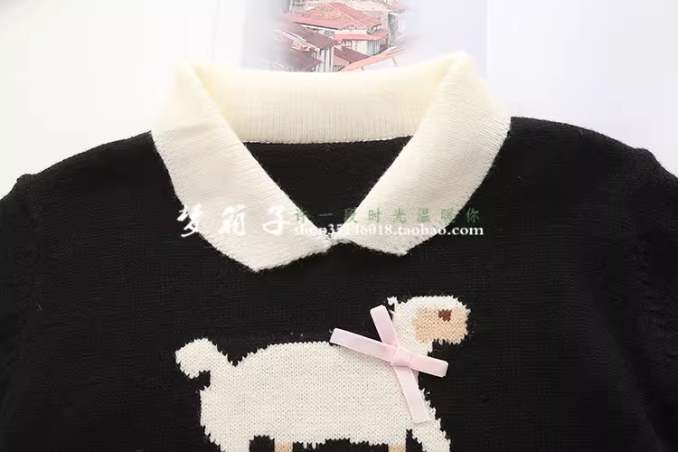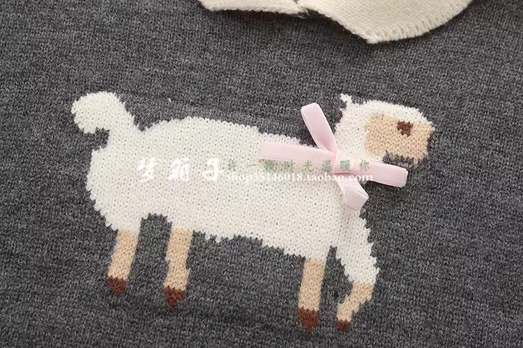 蝴蝶结小羊提花,拼色翻领,短款设计