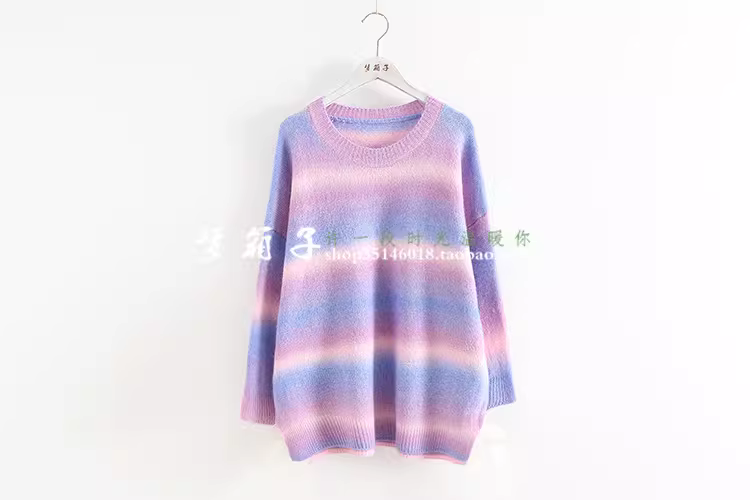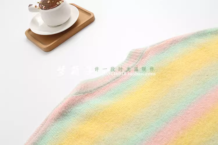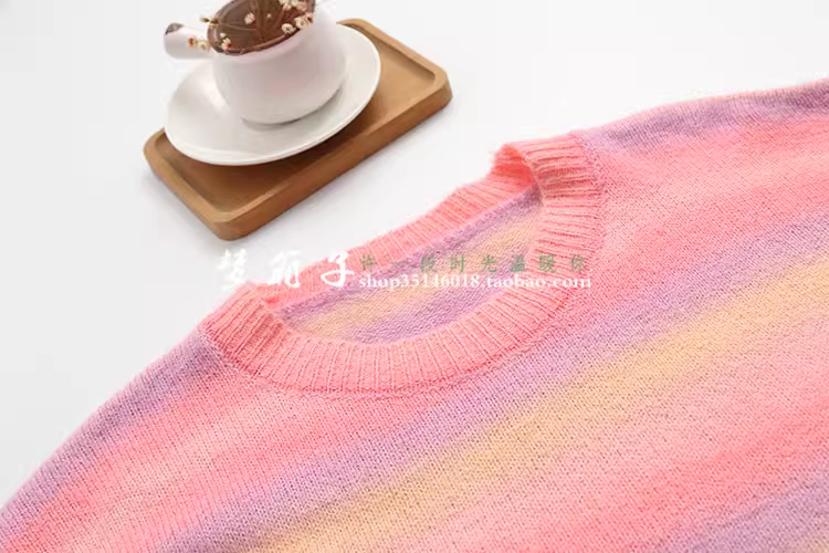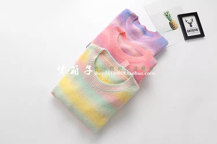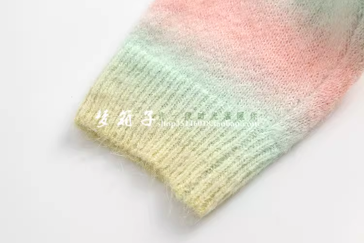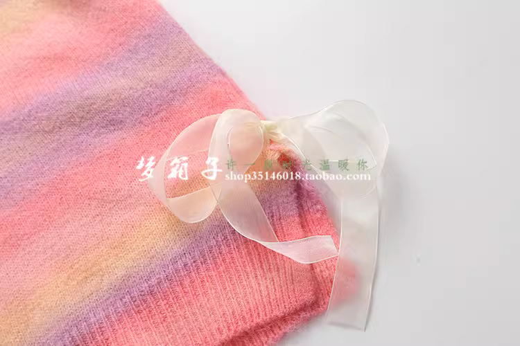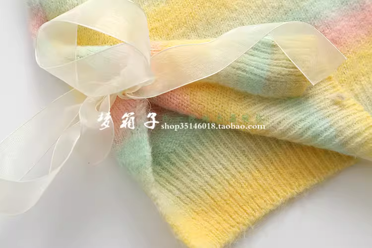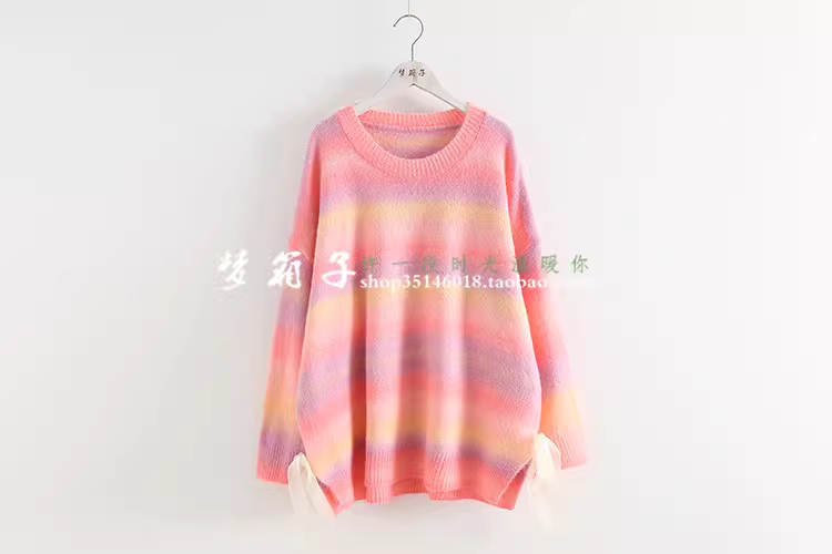 - Áo len nữ dáng rộng cổ tròn dệt kim phối màu cầu vồng kiểu nơ Dream Box Thu 2025