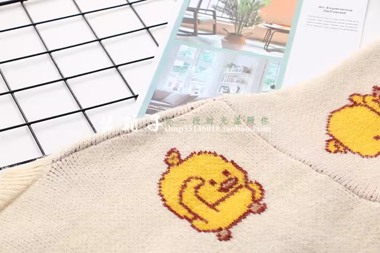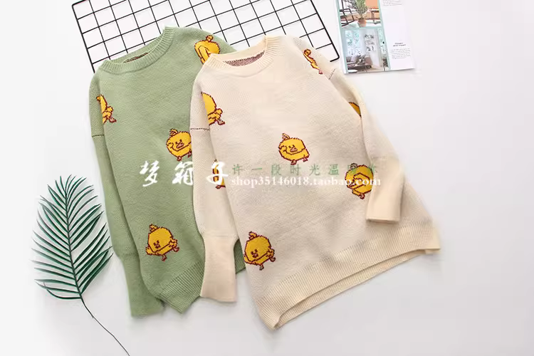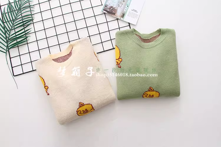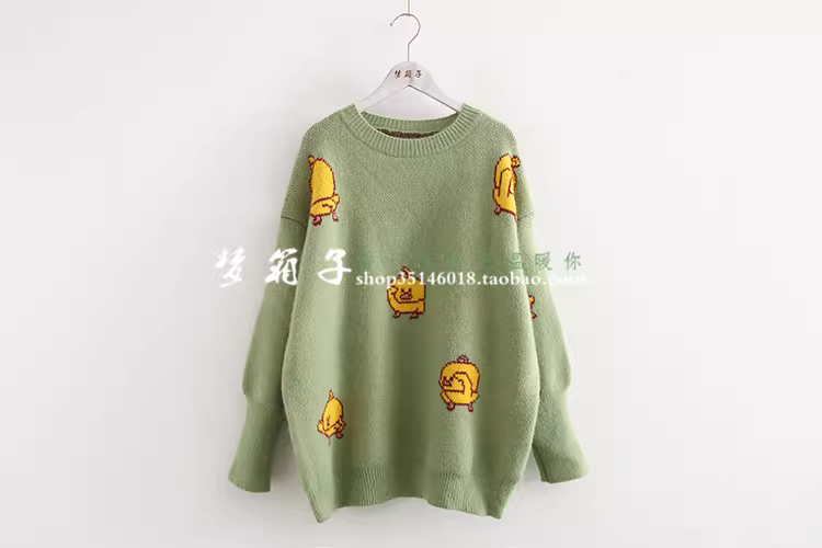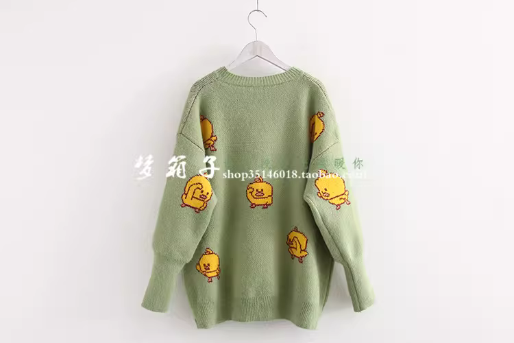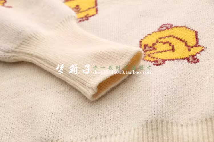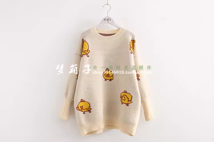 - Áo len nữ dáng rộng cổ tròn họa tiết vịt vàng nhỏ thời trang thu đông 2025 Dream Box, đa năng, tươi mát