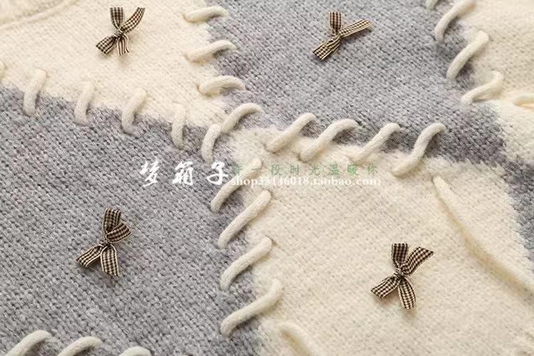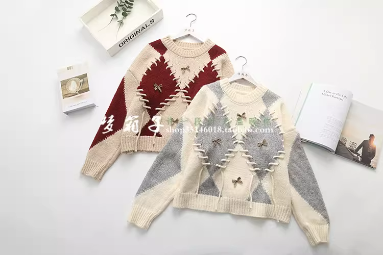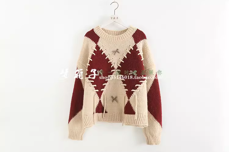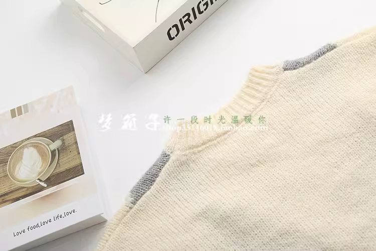 - Áo len nữ dáng rộng cổ tròn tay dài phối màu chần bông kiểu dáng mới Thu 2024 Dream Box