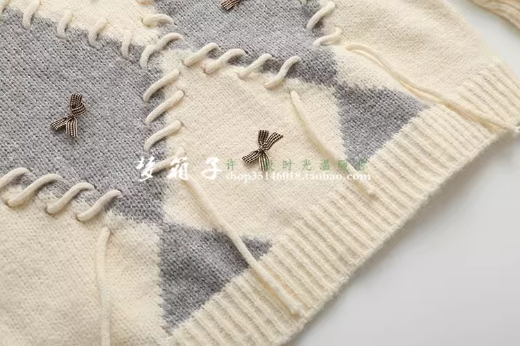 甜美蝴蝶结,绑带设计,撞色菱形格