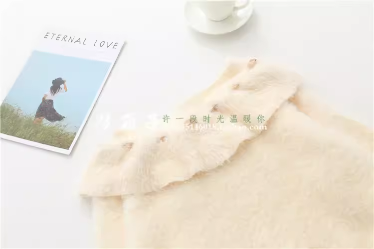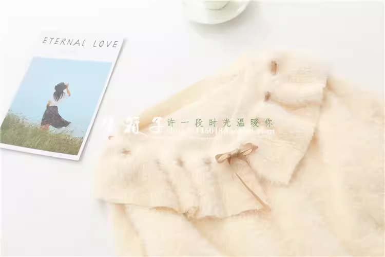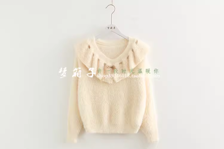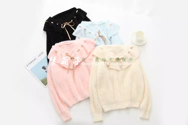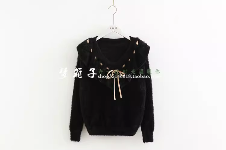 - Áo len nữ dáng rộng màu trơn giả lông chồn Dream Box 2025 Thu mới, cổ bèo phối dây buộc, kiểu dáng dễ thương