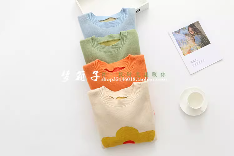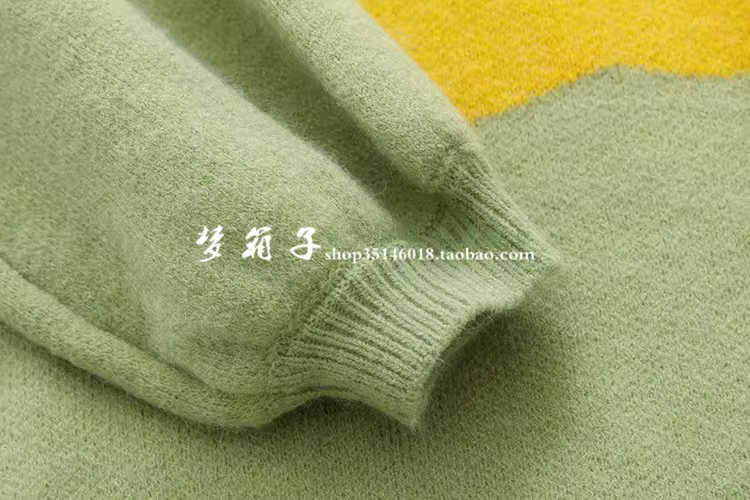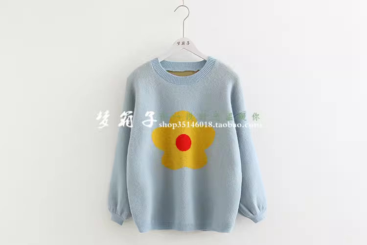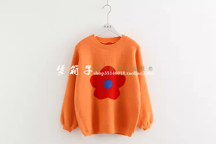 - Áo len nữ dáng rộng phối màu, cổ tròn, họa tiết hoa tươi kiểu mới Thu 2024 Dream Box