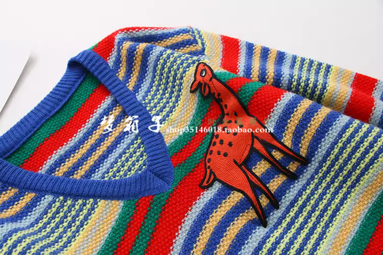 彩色条纹,卡通长颈鹿刺绣,宽松甜美款