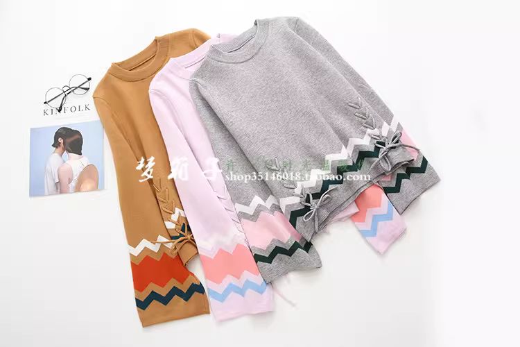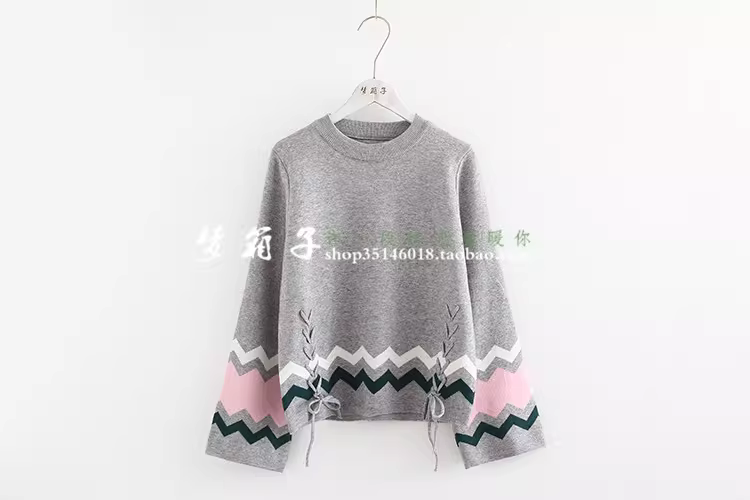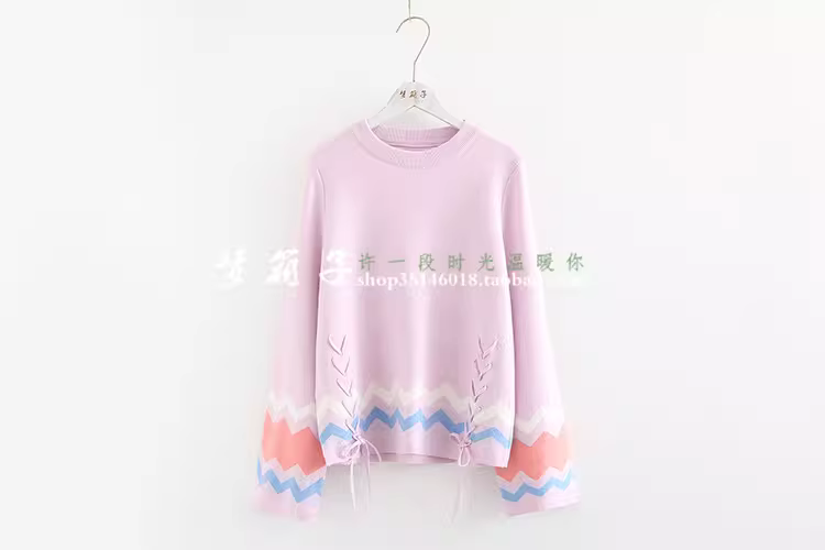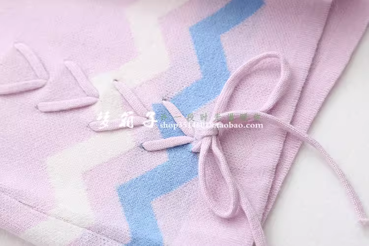 交叉系带蝴蝶结,撞色波浪图案,少女心美美哒